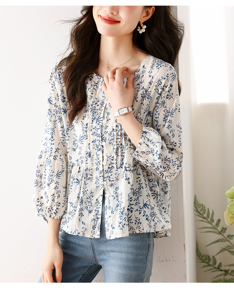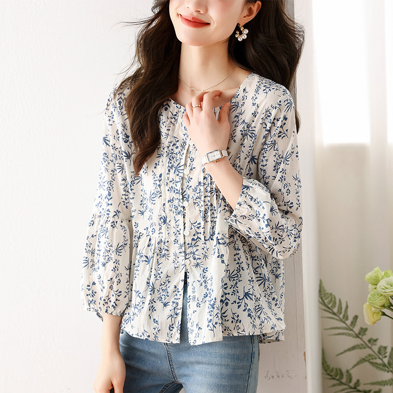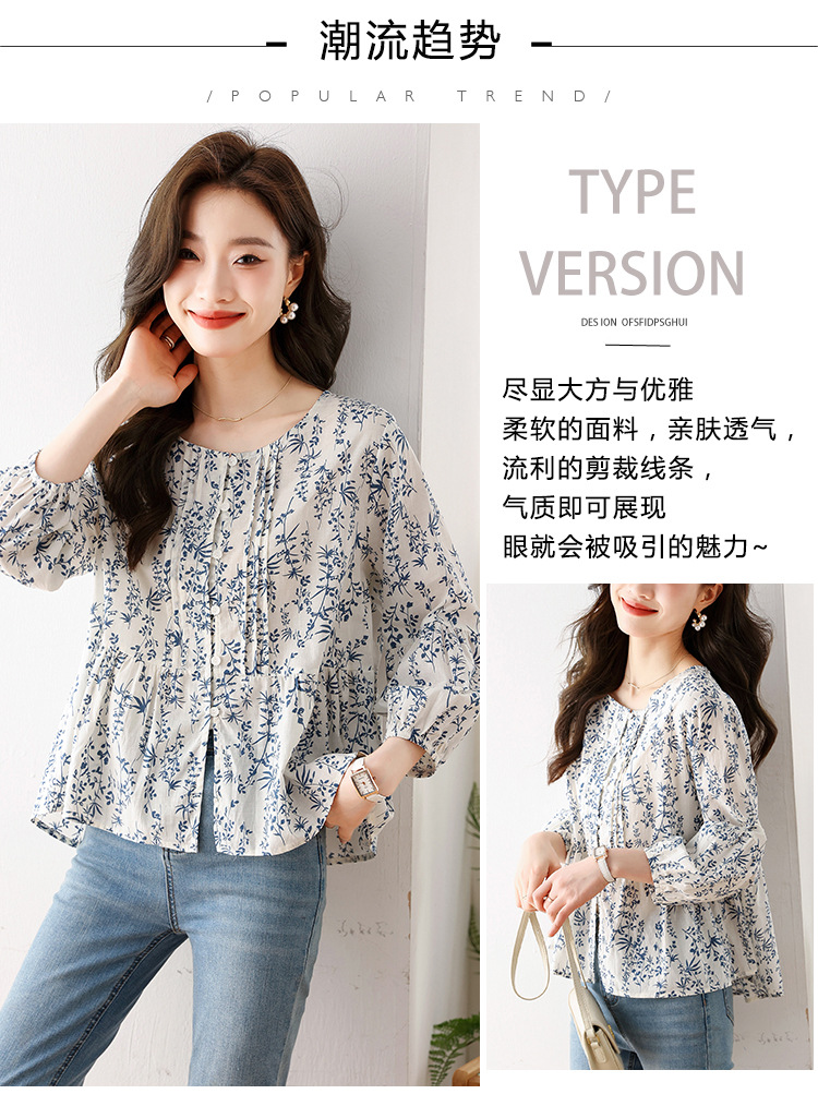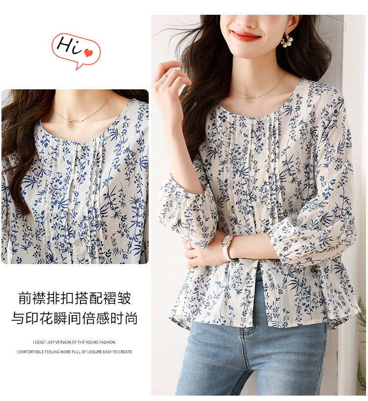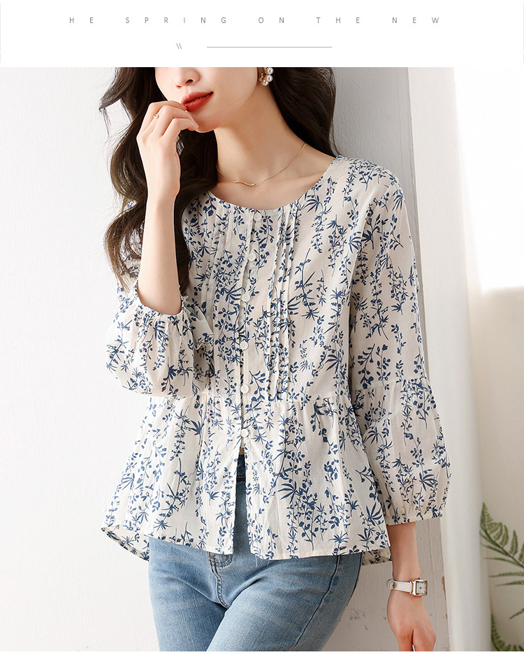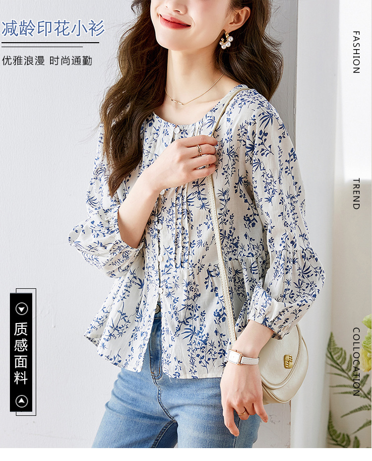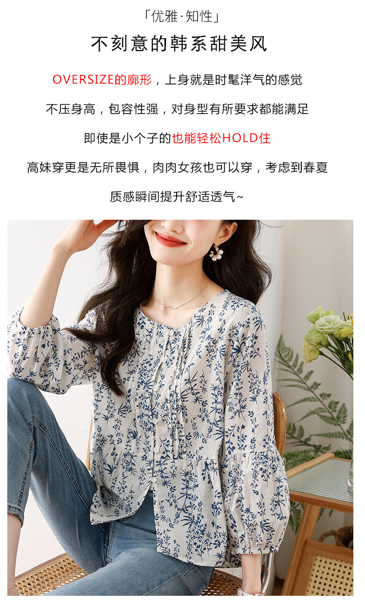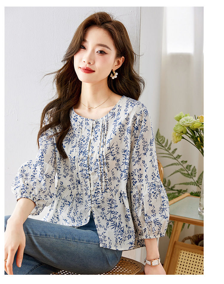 여름 신상품 7부 소매 시크 탑 여성 디자인 틈새 스타일 패션 꽃무늬 쉬폰 셔츠스토어 가기