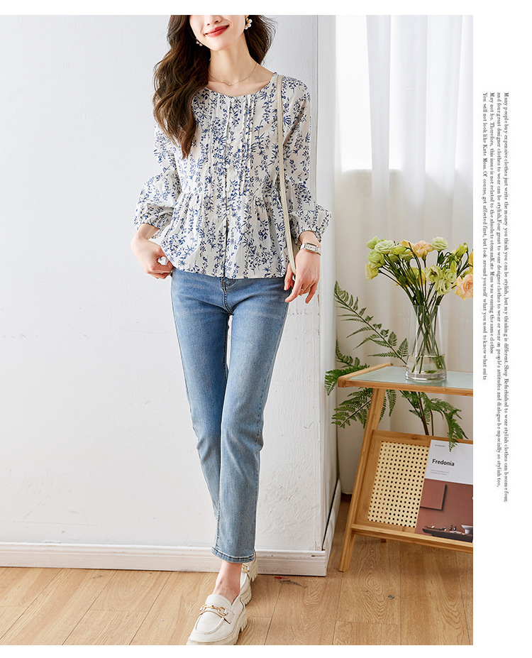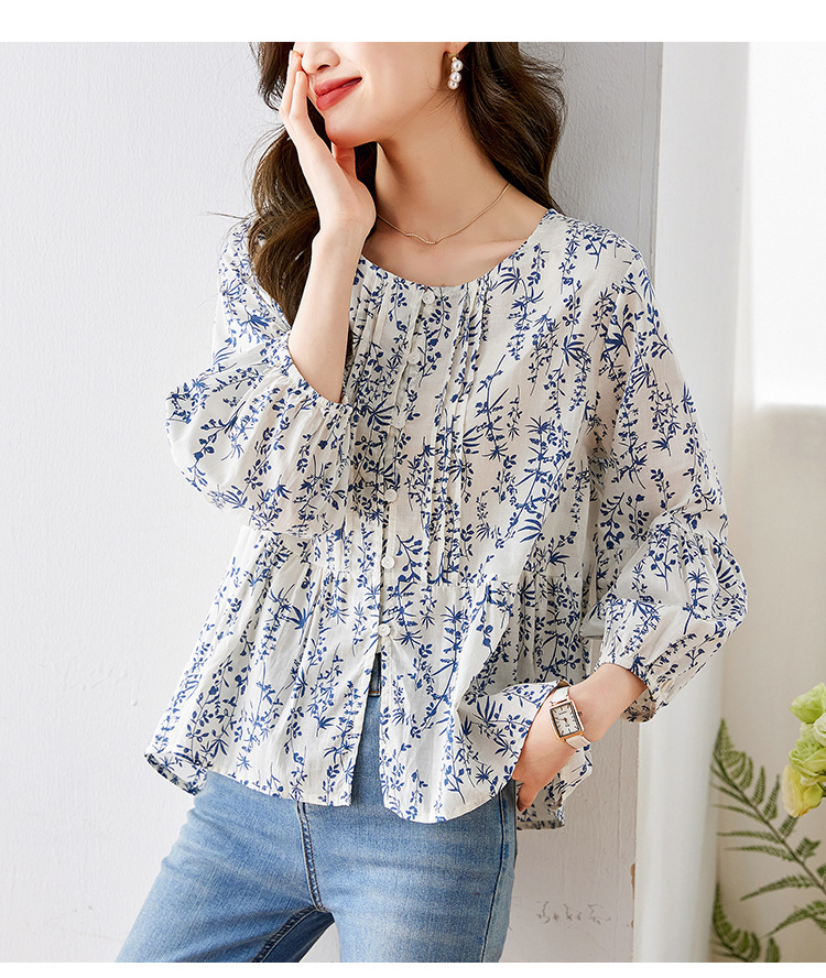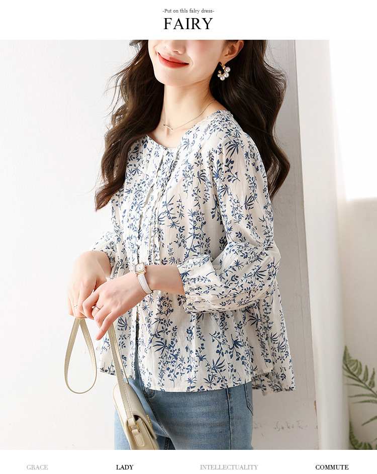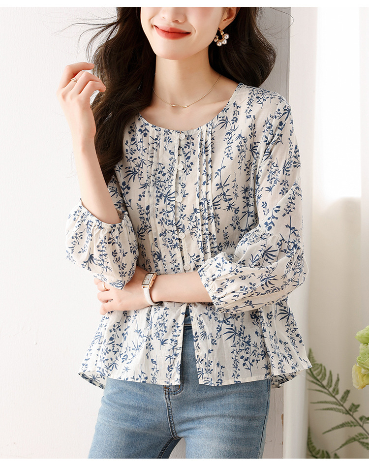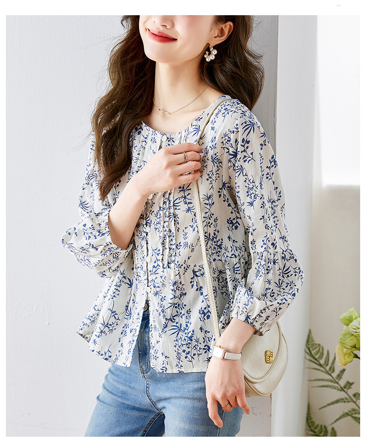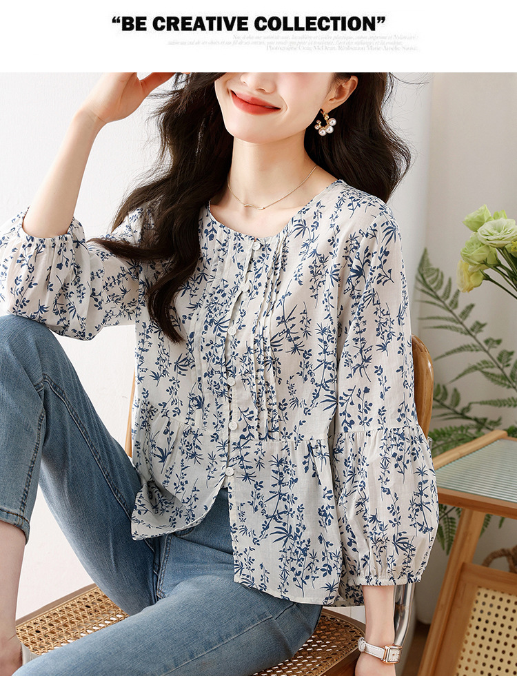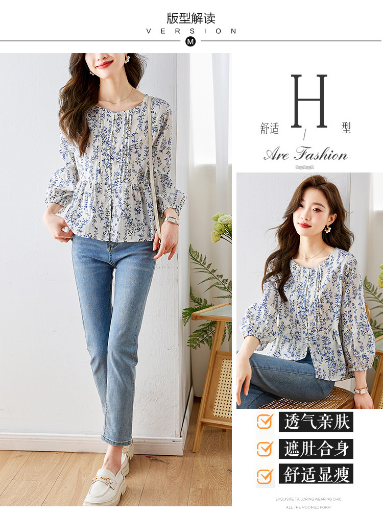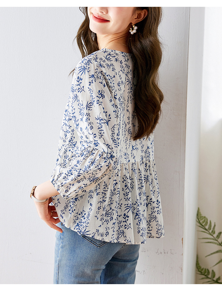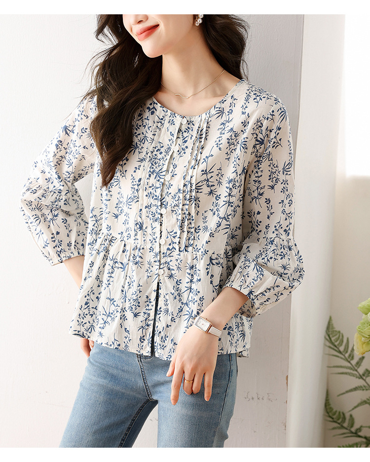 여름 신상품 7부 소매 시크 탑 여성 디자인 틈새 스타일 패션 꽃무늬 쉬폰 셔츠스토어 가기