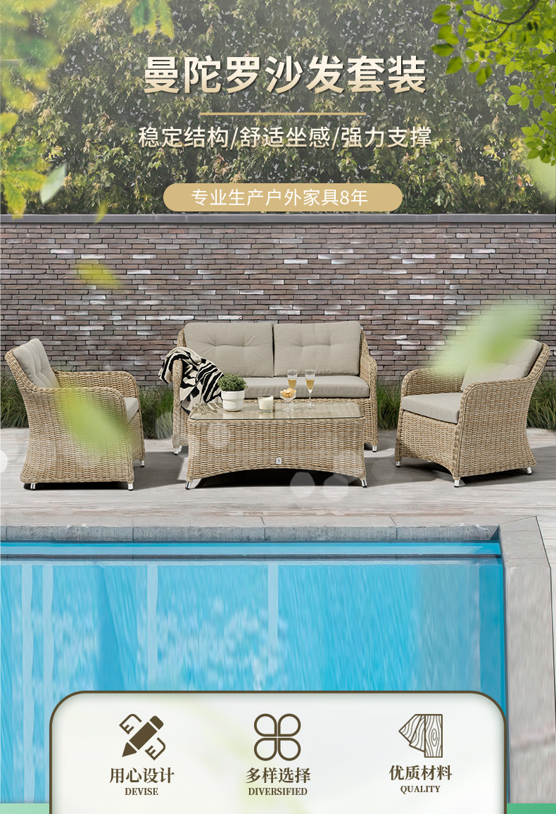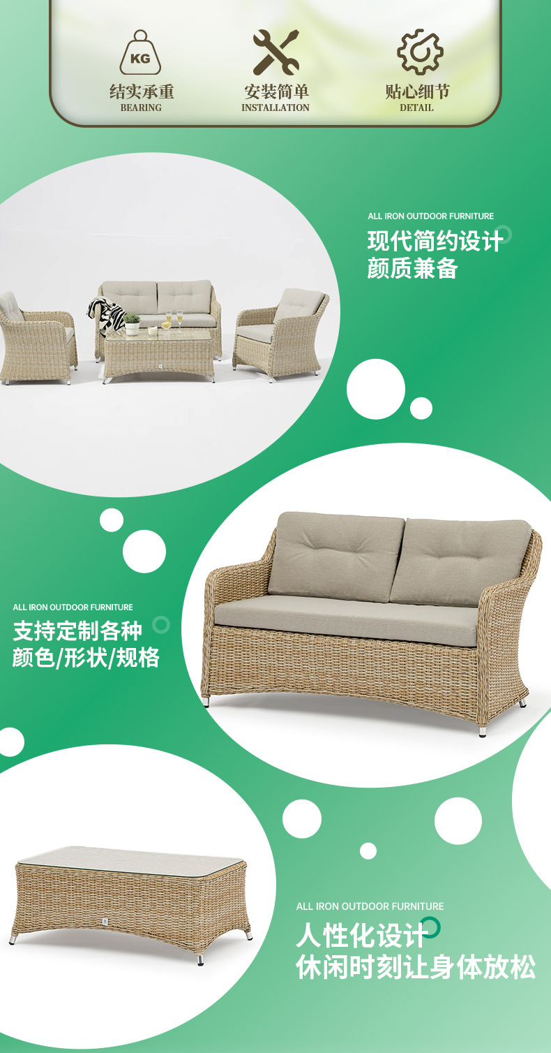 轻奢防晒防水藤编沙发组合户外露天酒店阳台藤椅套装轻奢户外家具스토어 가기