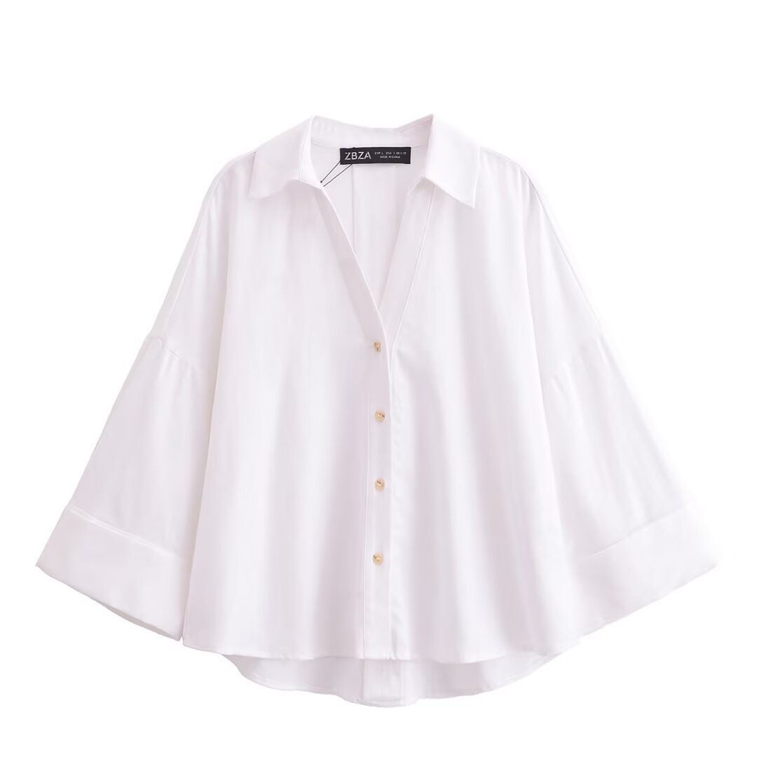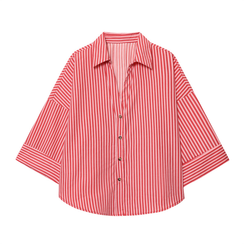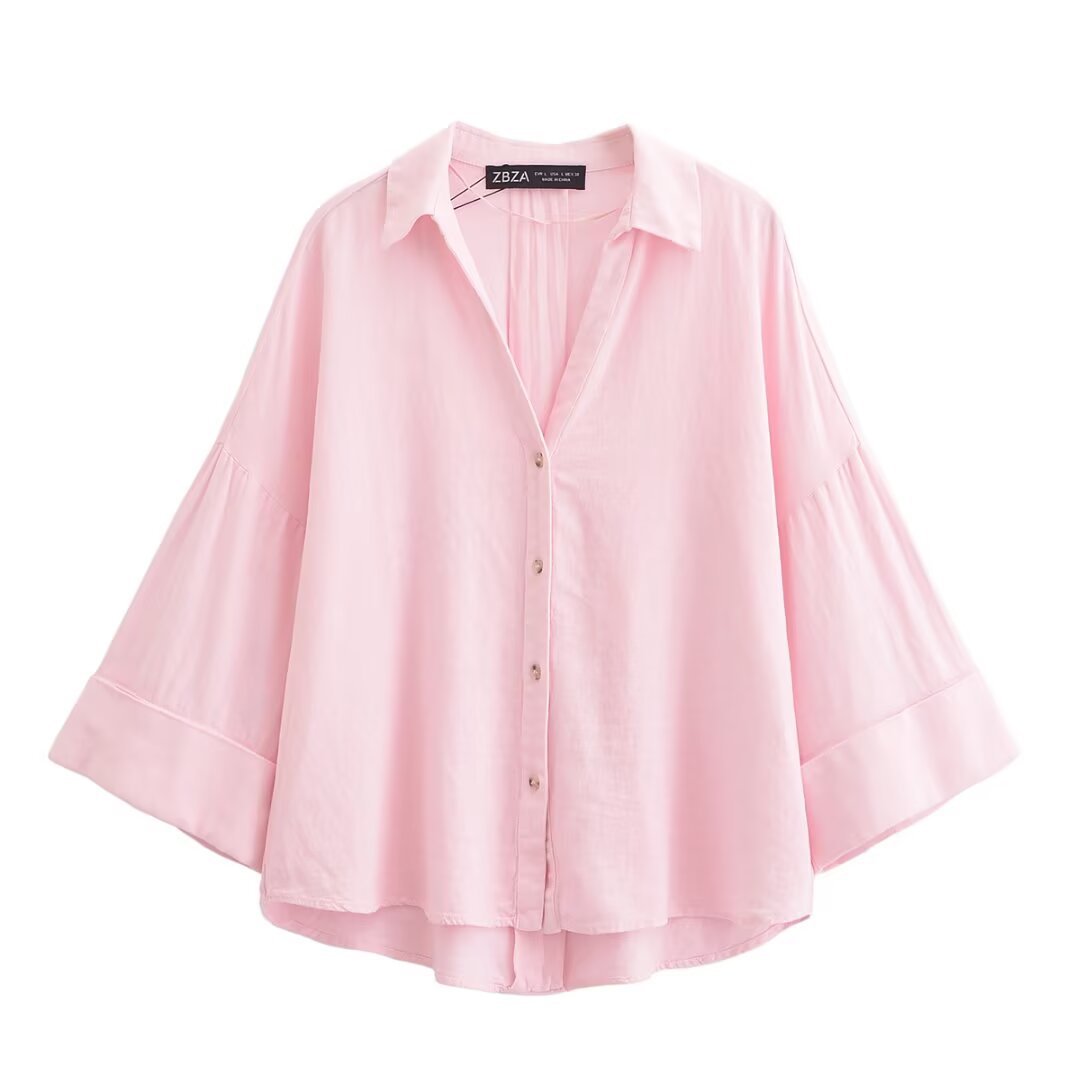 대외 무역 2025 봄 신작 긴 패션 루즈 캐주얼 디자인 틈새 셔츠 탑 2340939