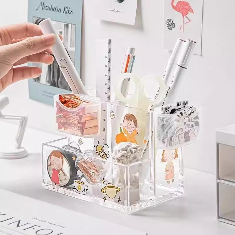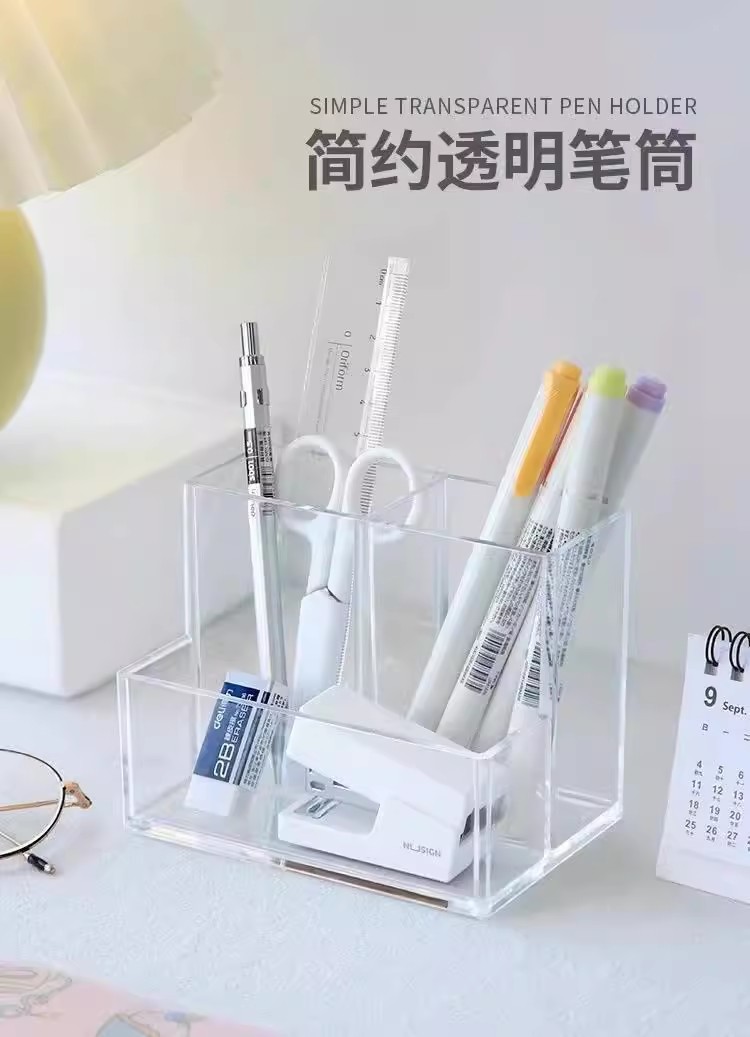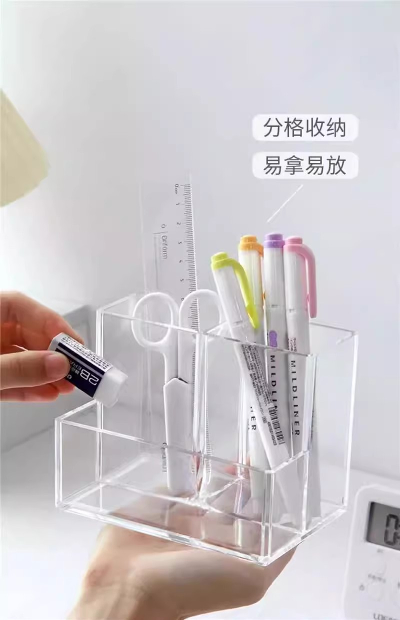 아크릴 투명 펜 홀더 대용량 어린이 소녀 초등학교 책상 문구 보관 상자 보관함 고급스러운 외관