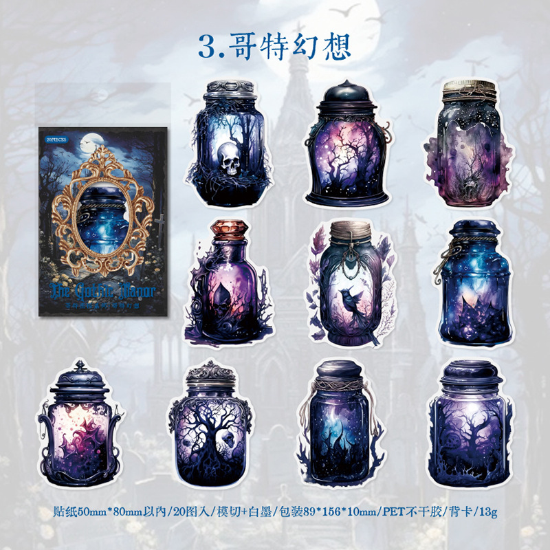 Yanji PET 스티커 팩 고딕 매너 시리즈 복고풍 핸드북 DIY 재료 장식 스티커 4가지 스타일로 20개
