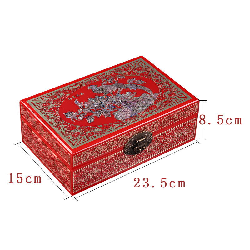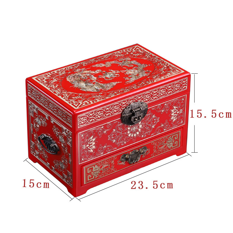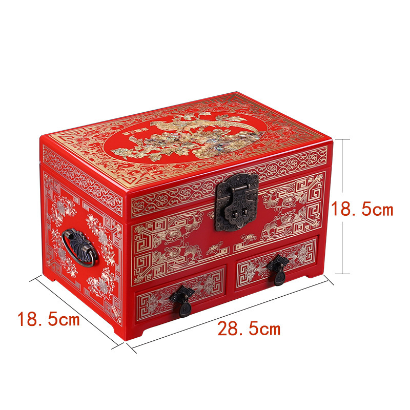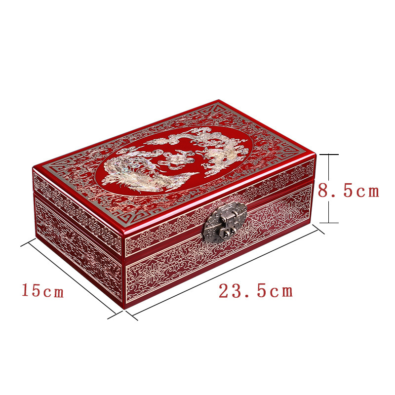 • W 부티크 28 캐비닛 - 진한 빨간색 - 용과 봉황이 상서로운 모양을 보여줍니다(무료 작은 자물쇠 + 브로케이드 상자 + 핸드백)