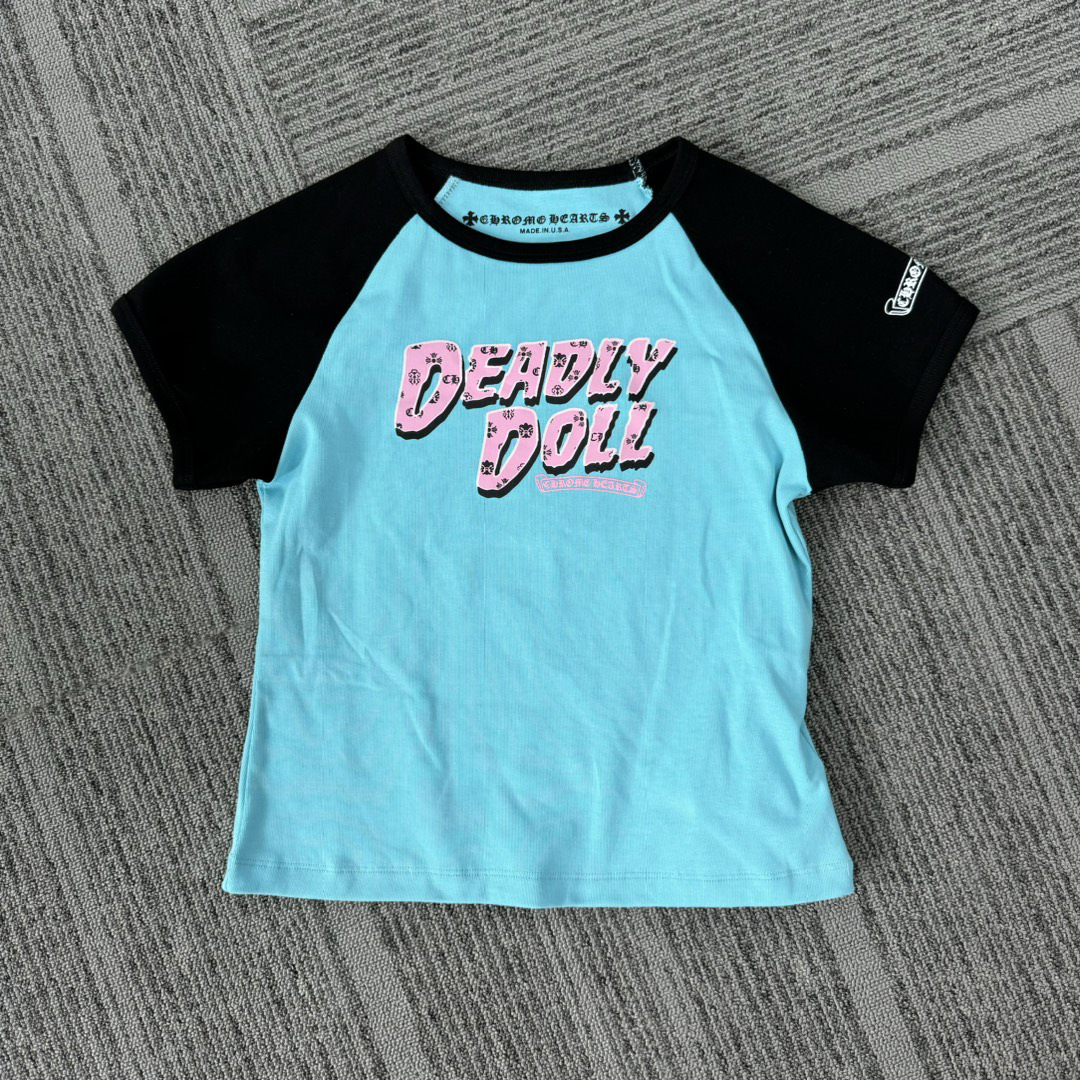 [독가스팟 올바른 버전] ChCrow Deadly Doll 프린트 스레드 슬림핏 여성 반팔 티셔츠