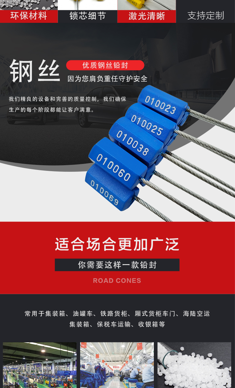 一次性钢丝封条抽紧式塑料铅封锁扣电表集装箱物流封签施封锁扎带