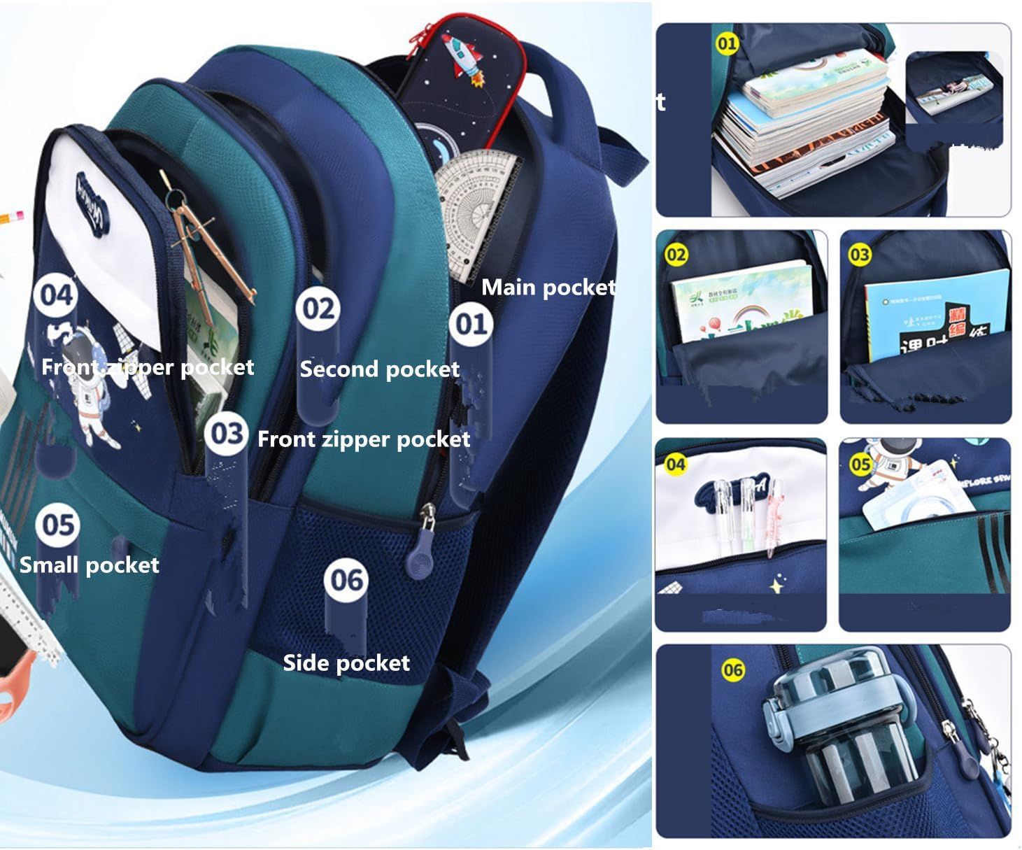 2025년 국경 간 인기 우주 비행사 초등학교 가방 3피스 어린이 배낭 아마존 통기성 및 부담 감소스토어 가기