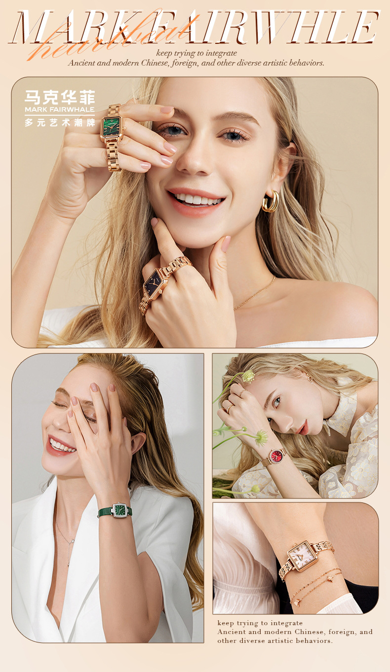 Mark Fairwhale 브랜드 시계 여성용 다이아몬드 라이트 럭셔리 쿼츠 시계 인기 럭셔리 시계스토어 가기