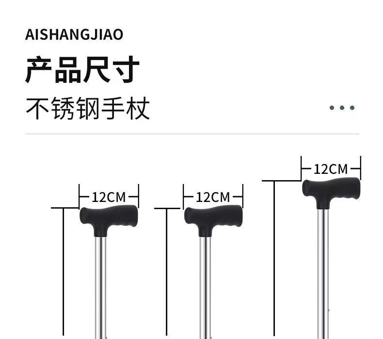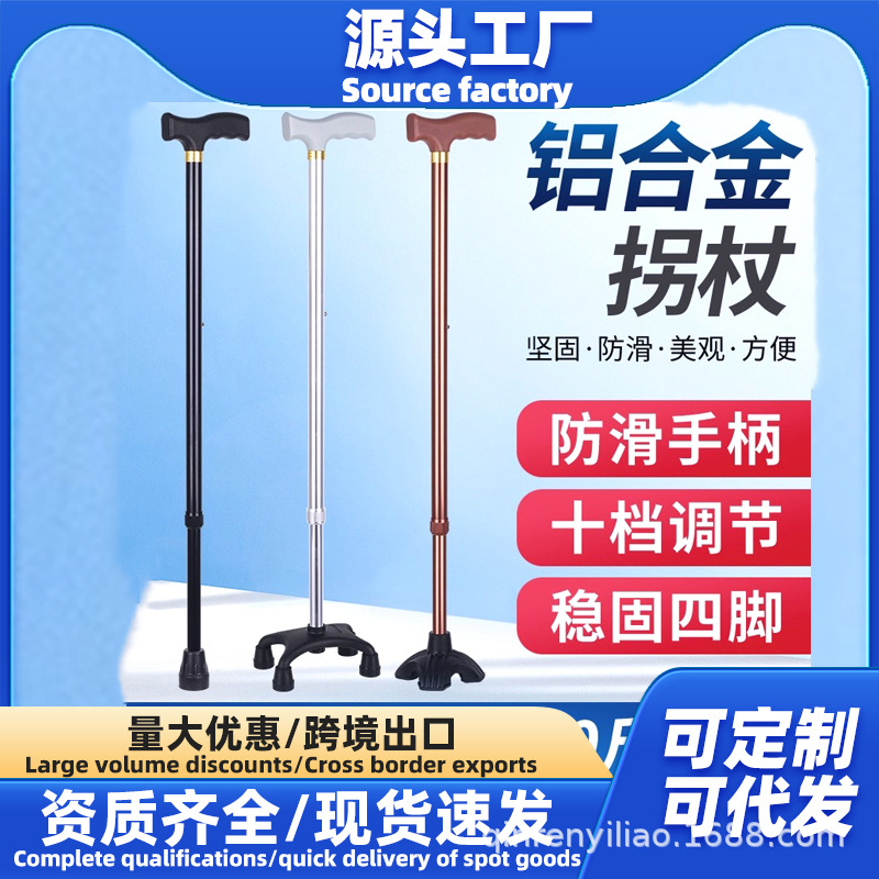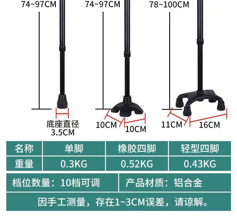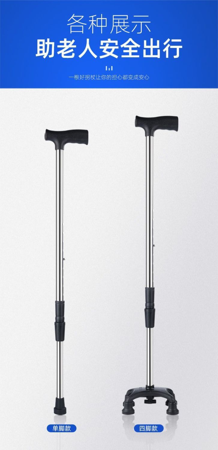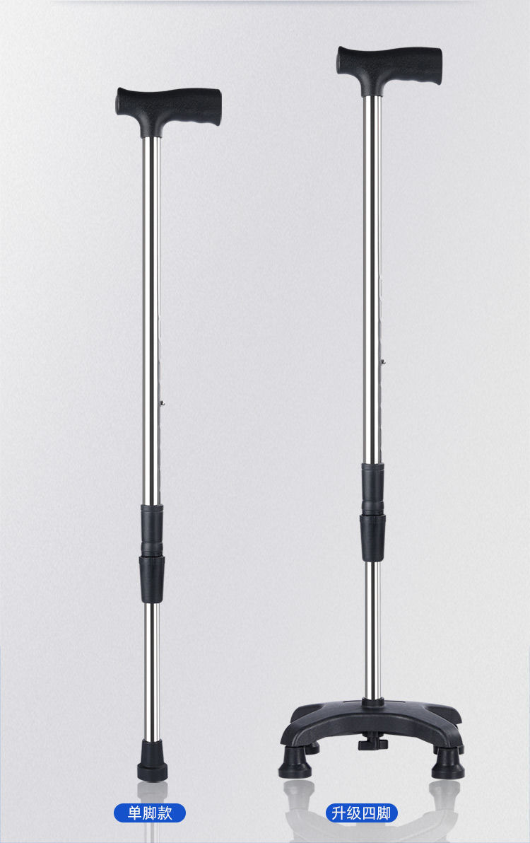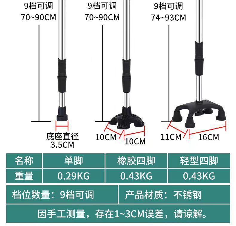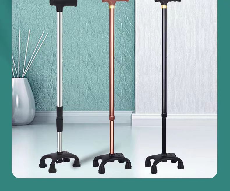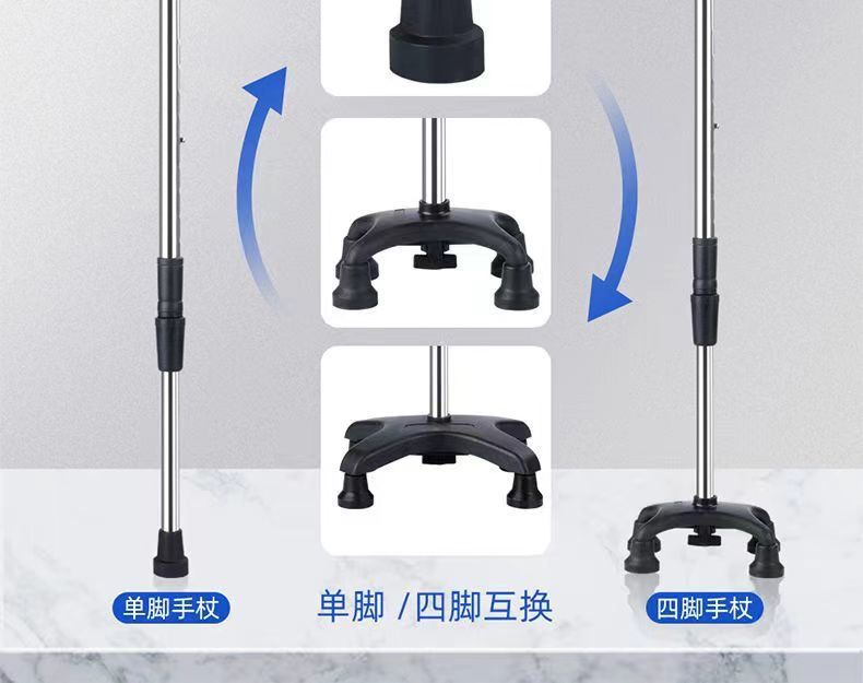 노인용 지팡이, 노인용 네각 지팡이, 스테인레스 스틸 두꺼운 네발 지팡이, 장애인용 조절 가능한 경량 미끄럼 방지 지팡이