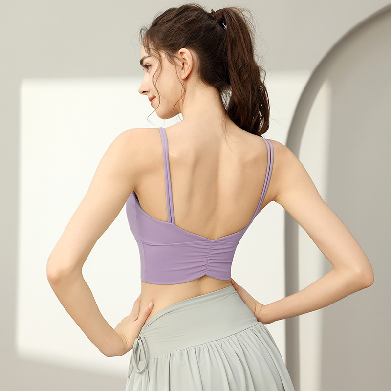 고강도 일체형 더블 숄더 스트랩 백리스 요가 브라 필라테스 러닝 여성용 충격 방지 조끼 스포츠 브라스토어 가기