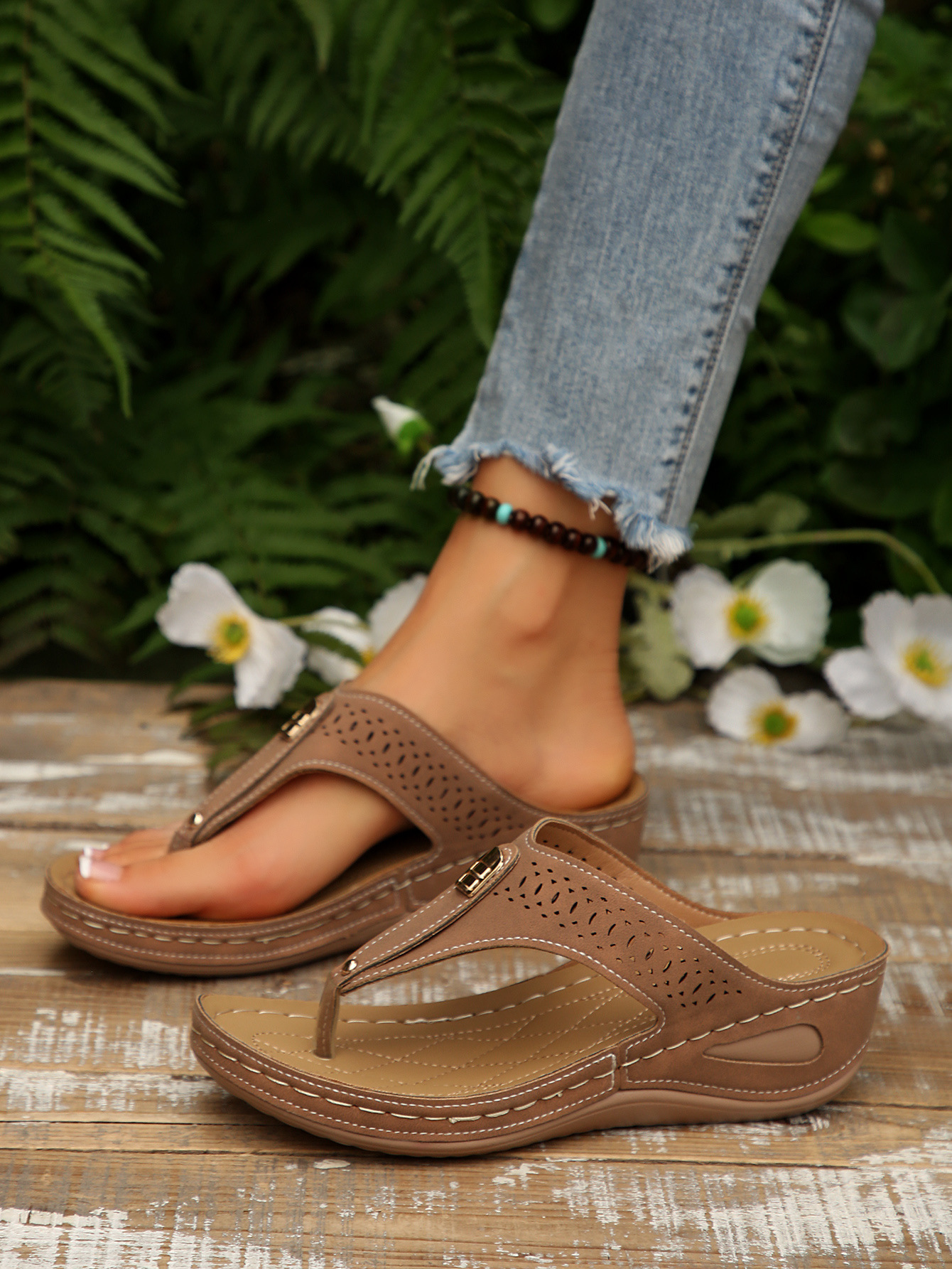 여성을위한 유럽과 미국의 국경 간 플립 플롭 2025 봄과 여름 여성을위한 새로운 패션 야외 웨지 힐 플립 플롭 샌들