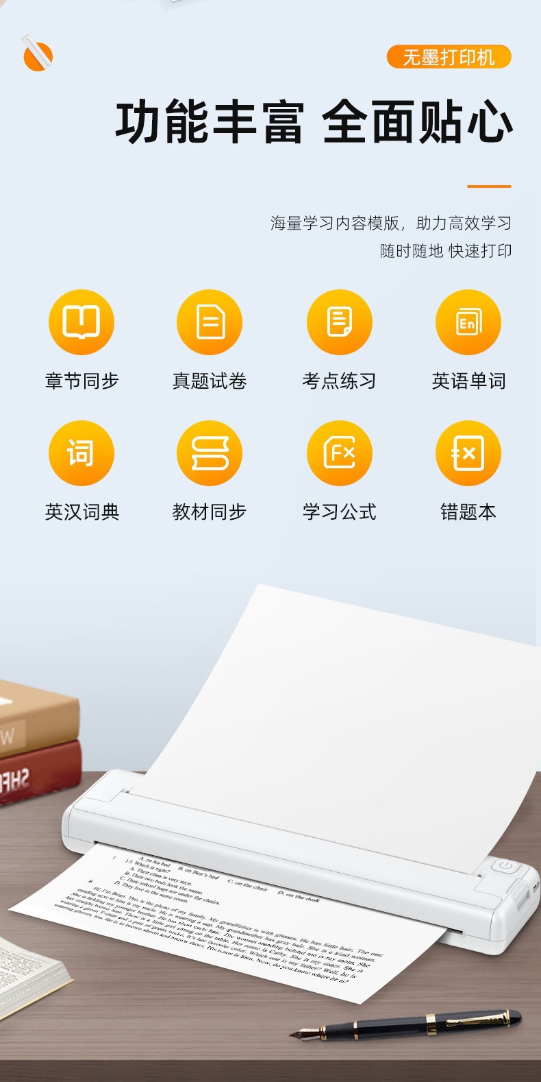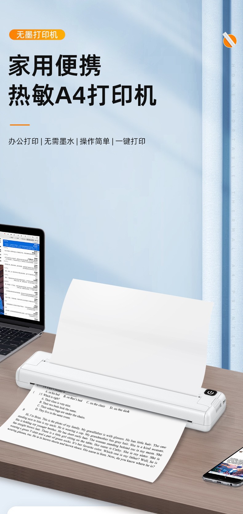 미니 휴대용 A4 열전 사 프린터 블루투스 연결 사무실 홈 학생 잘못된 질문 프린터 홈 소형
