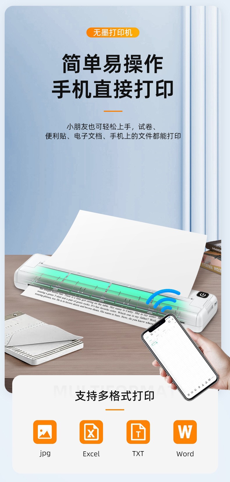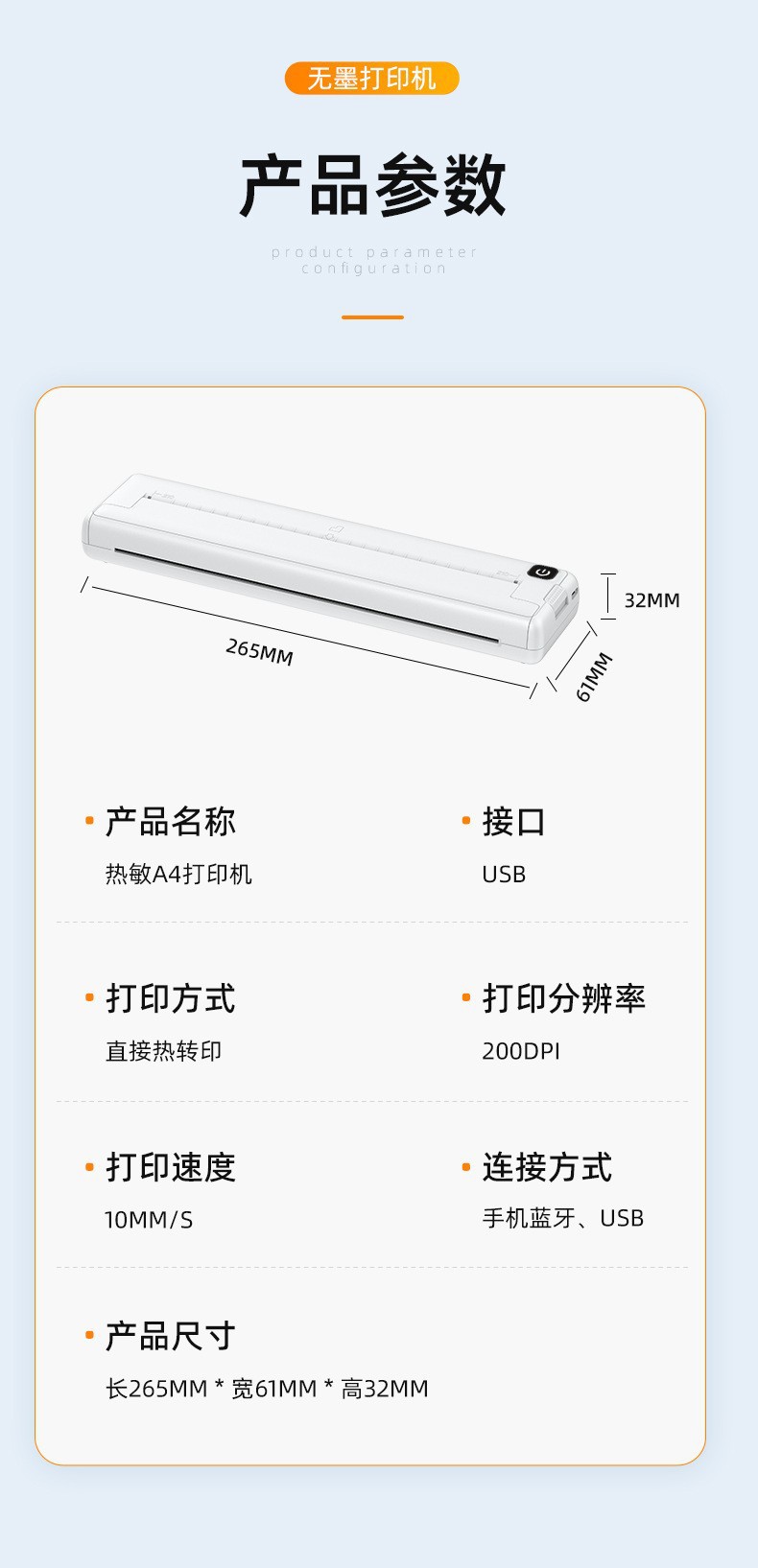 미니 휴대용 A4 열전 사 프린터 블루투스 연결 사무실 홈 학생 잘못된 질문 프린터 홈 소형스토어 가기