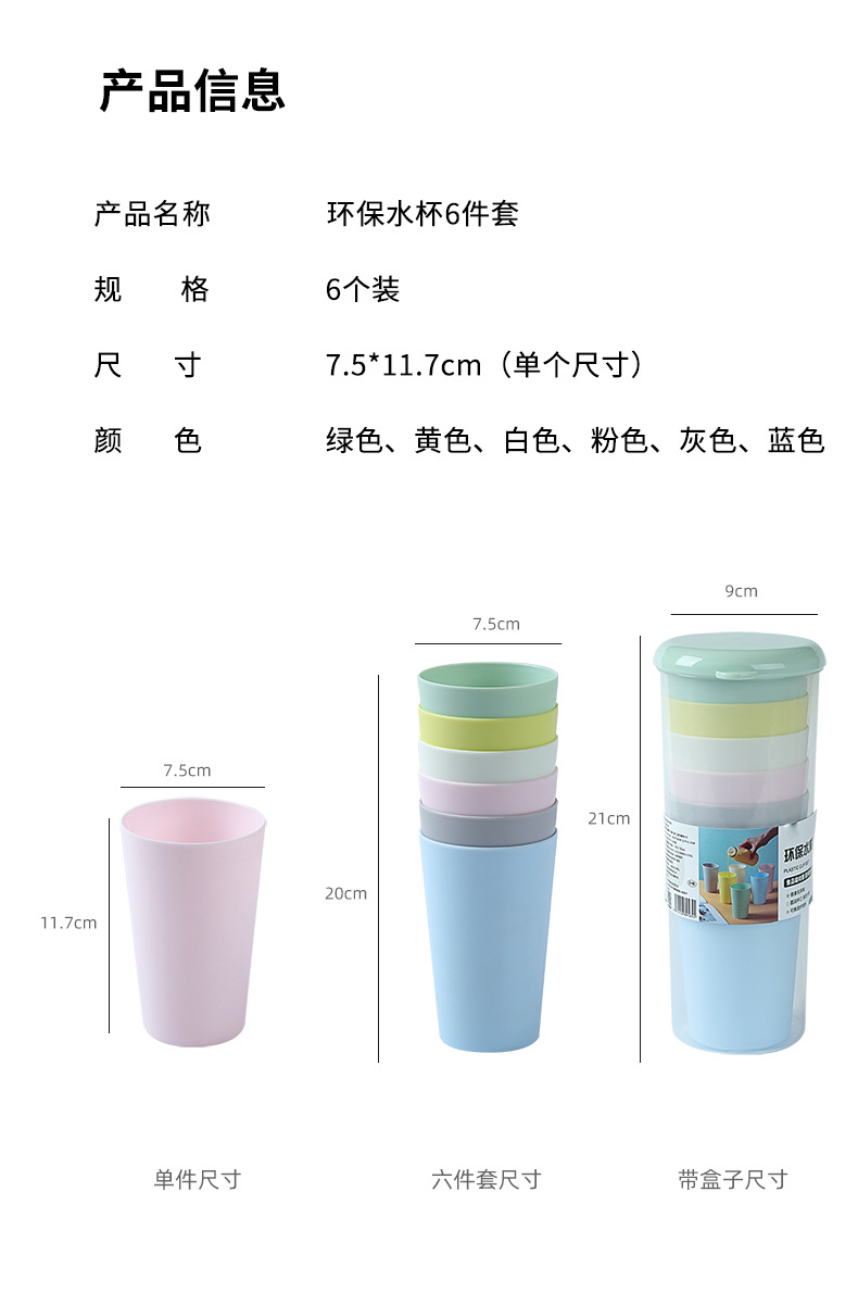 环保水杯6件套杯子颜值家用漱口杯塑料洗漱杯刷牙杯简约创意定制스토어 가기
