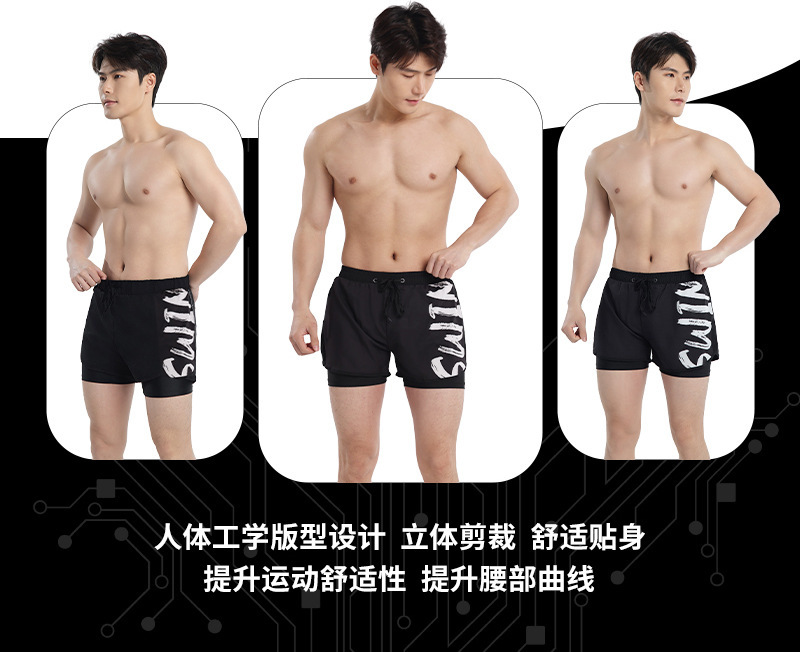 남성용 더블 레이어 수영 트렁크, 속건성, 루즈함, 당황스러운 방지 수영 트렁크, 스포츠 피트니스 러닝 반바지, 비치 서핑 핫 스타일스토어 가기