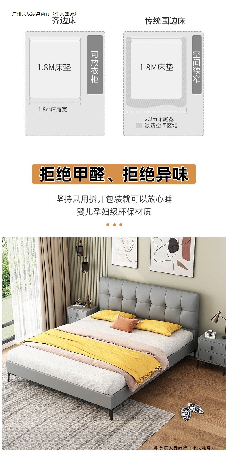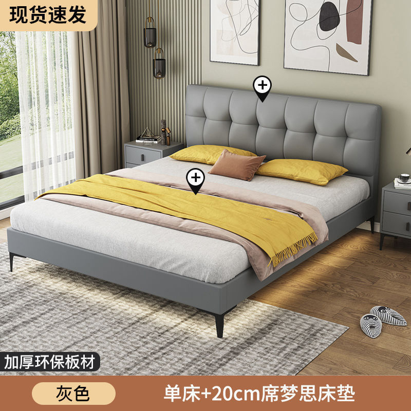 원목 침대, 가벼운 고급 기술 패브릭 더블 침대, 북유럽 모던 심플 웨딩 침대, 임대실 소프트 침대, 침실 원목 침대스토어 가기