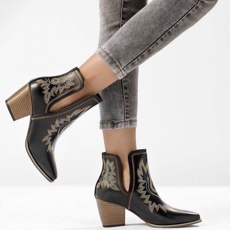 跨境印花刺绣尖头方跟切尔西靴2025秋季新款短筒欧美风女靴现货女스토어 가기