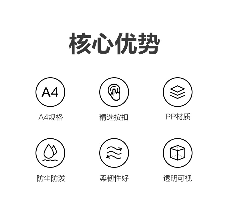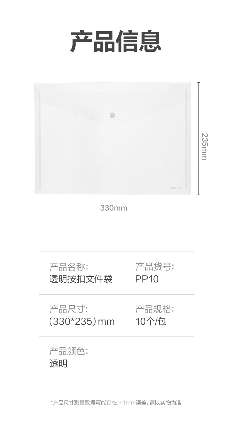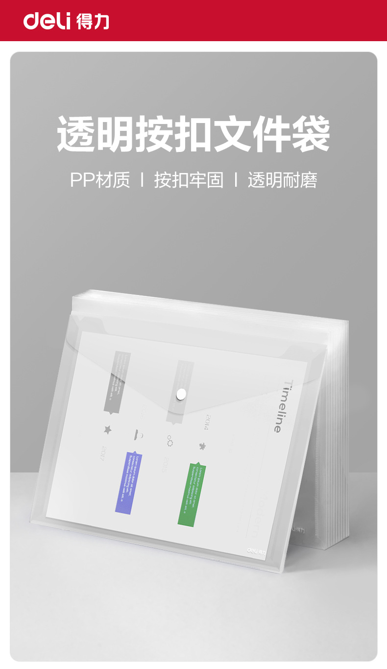 델리 A4 파일 가방 투명 스냅 테스트 용지 보관 가방 파일 보관 학생 사무실 두꺼운 대용량