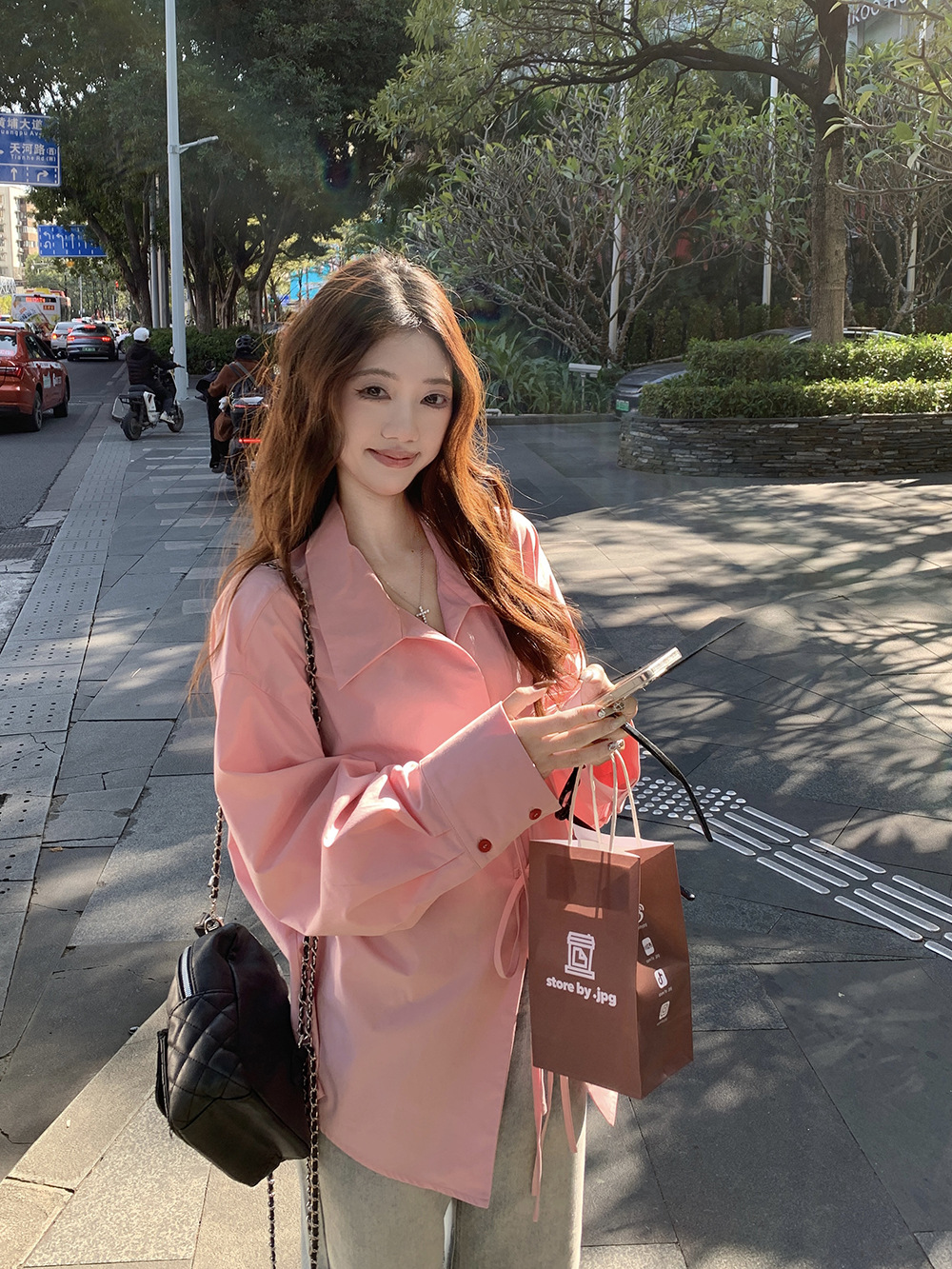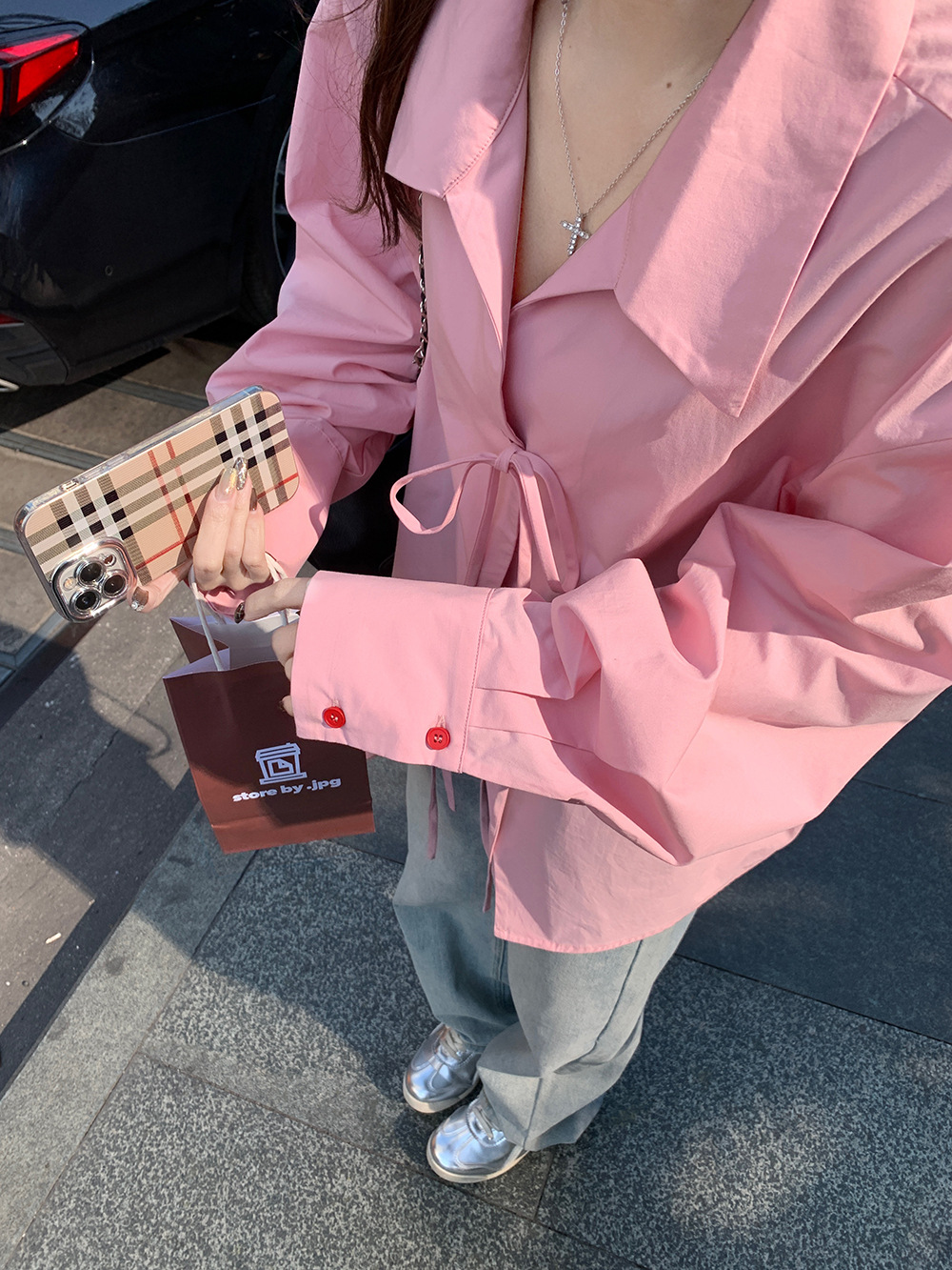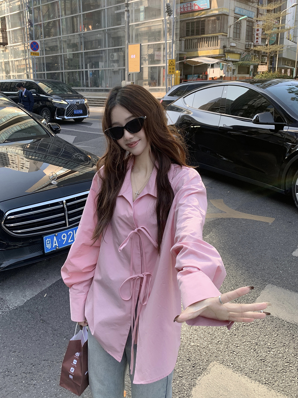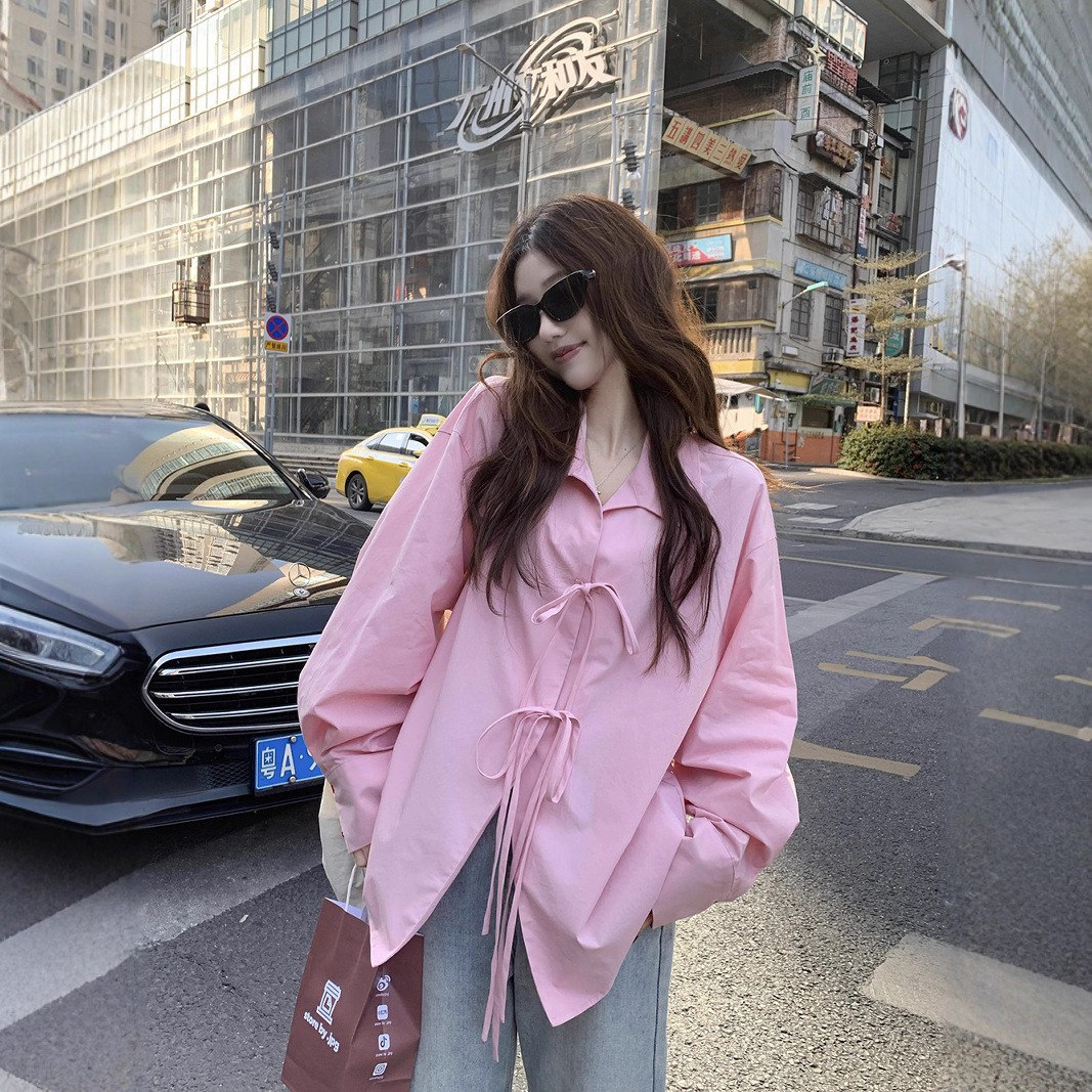 블루 보우 타이 긴 소매 셔츠 여성 여름 캐주얼 루즈 셔츠 얇은 자외선 차단 카디건 자켓 탑스토어 가기