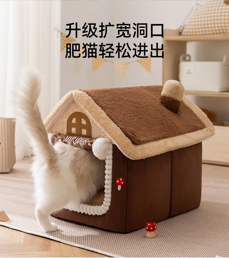 25년 신형 크로스보더 고양이집, 고양이 둥지, 가을 겨울 따뜻한 밀폐형 도어커튼 애완동물 집, 강아지 집, 고양이 빌라, 고양이 둥지스토어 가기