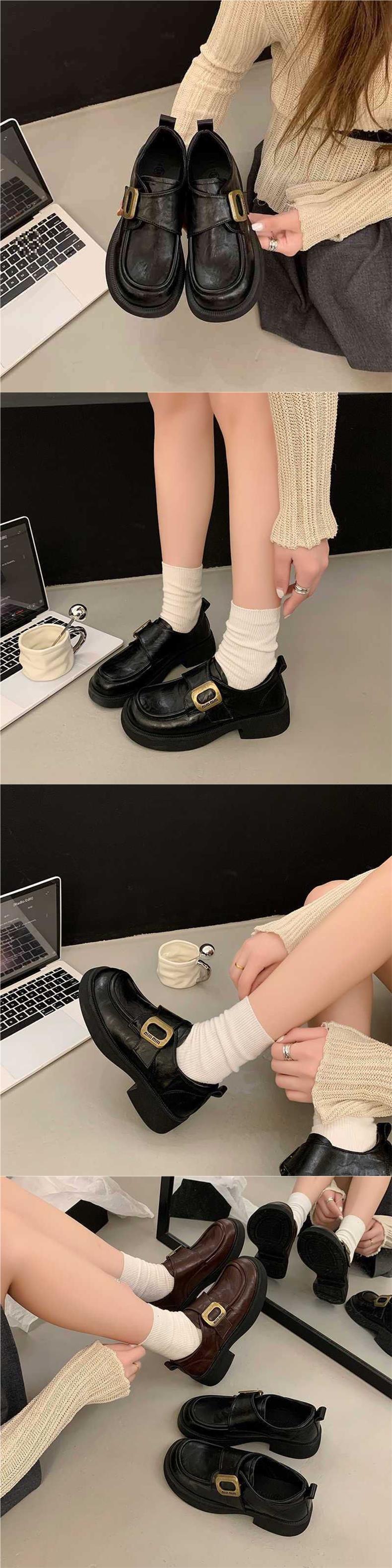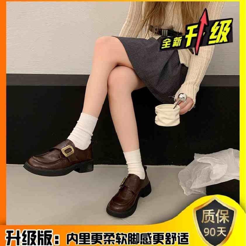 여성을위한 작은 가죽 신발 2025 새로운 봄, 가을 복고풍 영국 스타일 블랙 jk 싱글 신발 다목적 통근 부드러운 밑창 로퍼스토어 가기