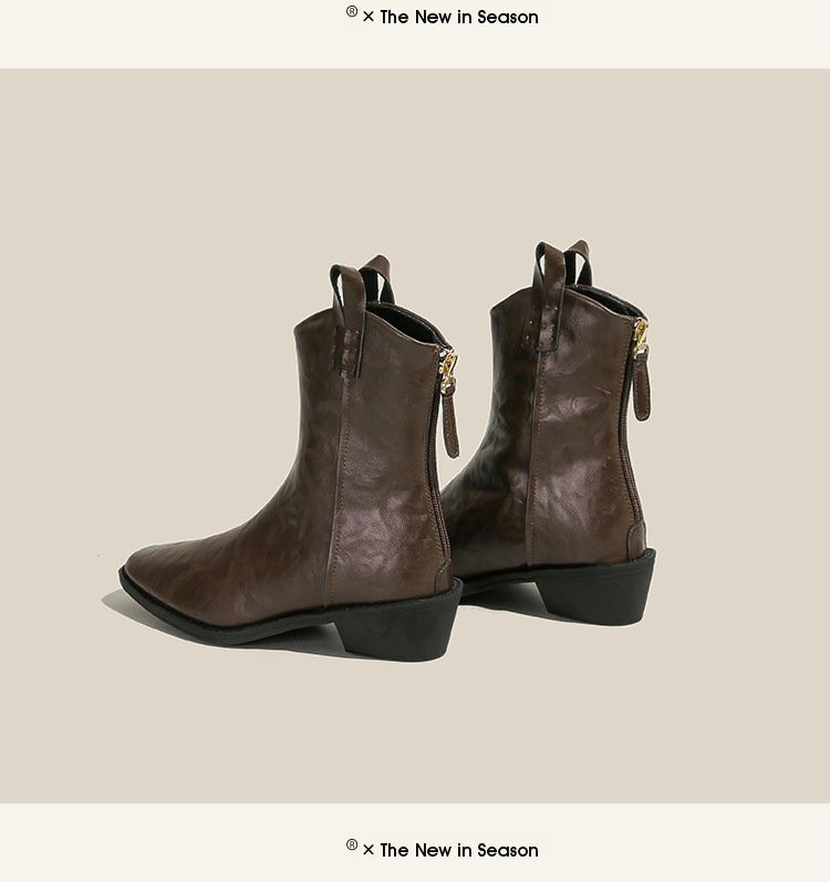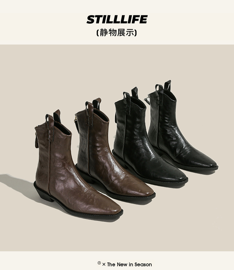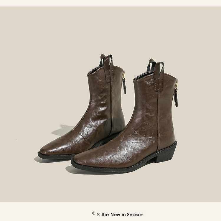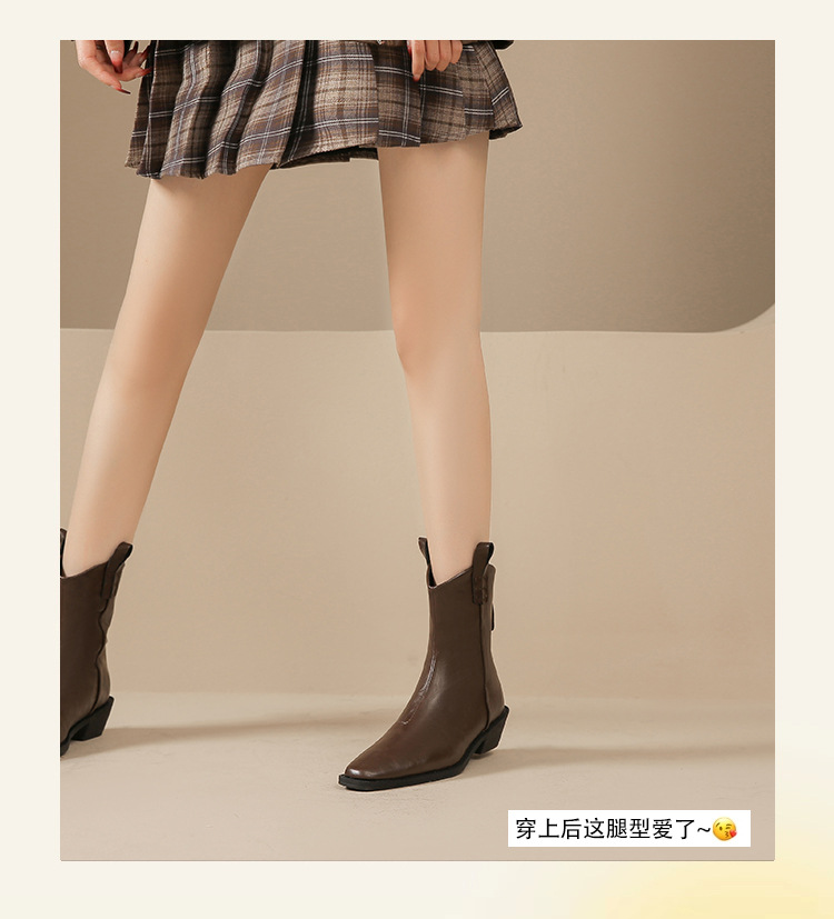 Grape Mom 포인티드 토 V 입 웨스턴 부츠 여성 가을, 겨울 새로운 유럽과 미국의 작은 사각형 토 첼시 숏 부츠 여성용 마틴 부츠스토어 가기