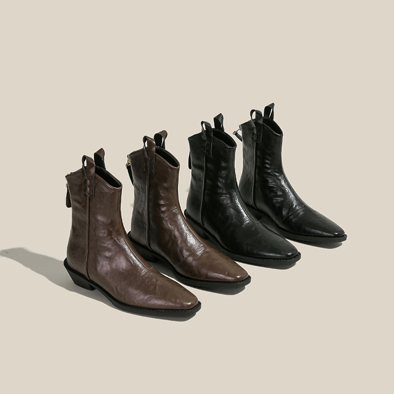 Grape Mom 포인티드 토 V 입 웨스턴 부츠 여성 가을, 겨울 새로운 유럽과 미국의 작은 사각형 토 첼시 숏 부츠 여성용 마틴 부츠