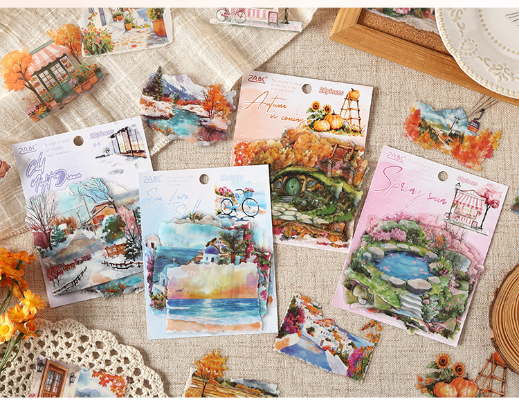 사계절 현악기 시리즈 애완 동물 방수 사계절 테마 조경 스티커 팩 diy 핸드북 장식 재료 콜라주 스티커스토어 가기