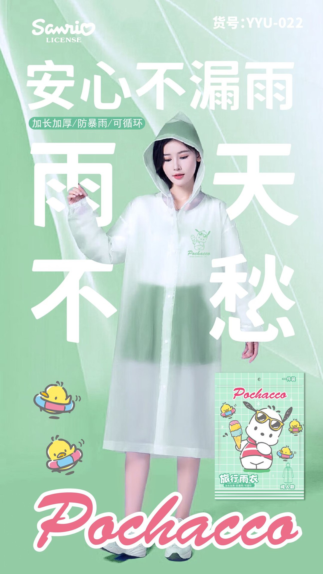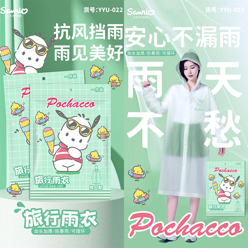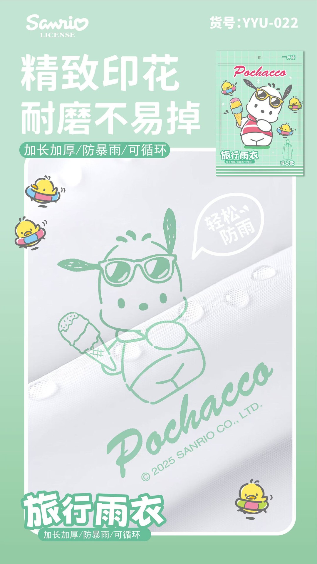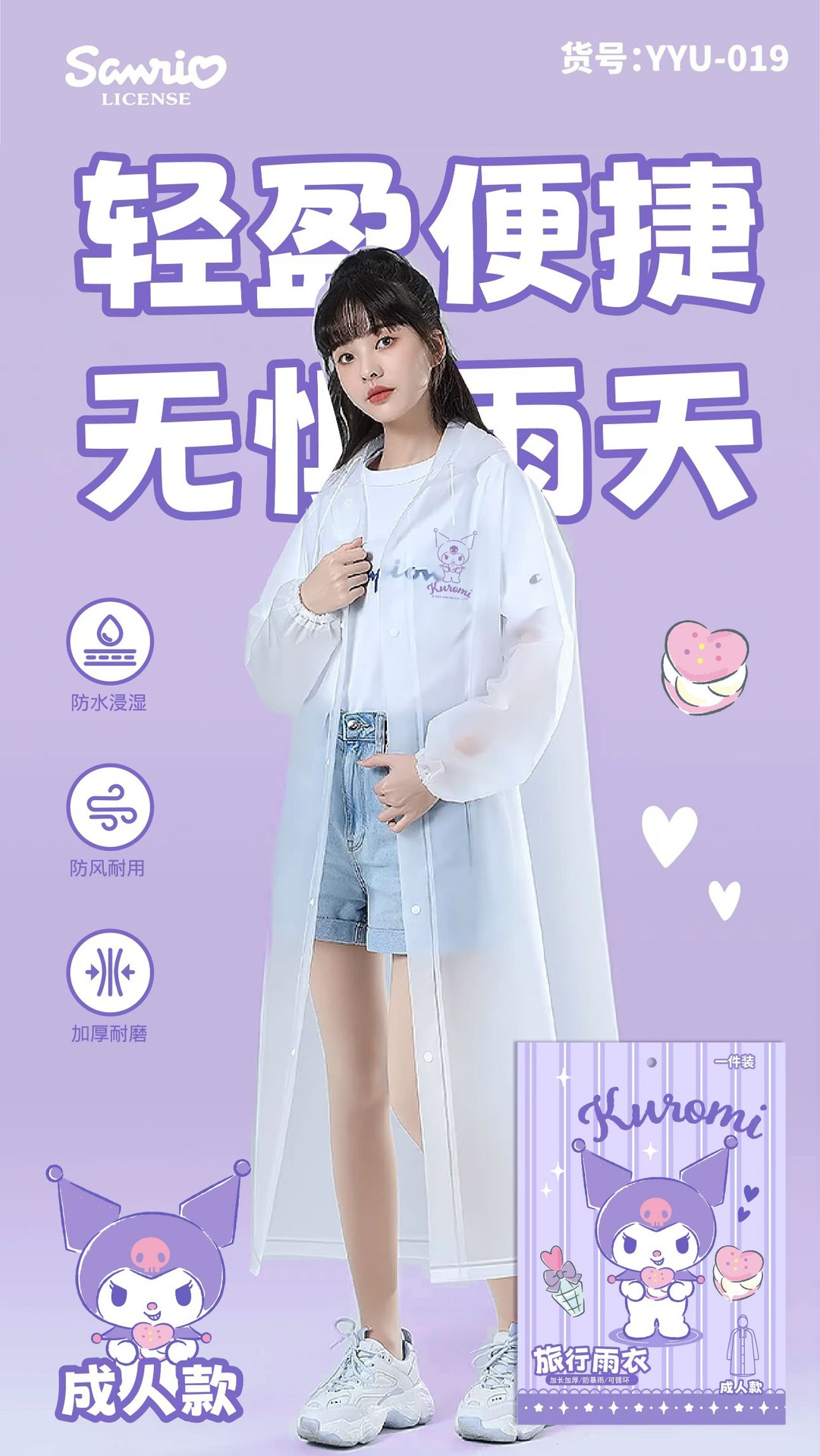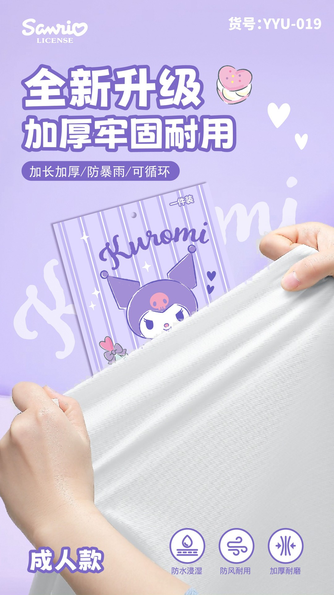 성인과 어린이를위한 Sanrio 여행 비옷 일체형 비옷 두꺼운 Pacha Dog Ugly Fish Poncho Kuromi Raincoat스토어 가기