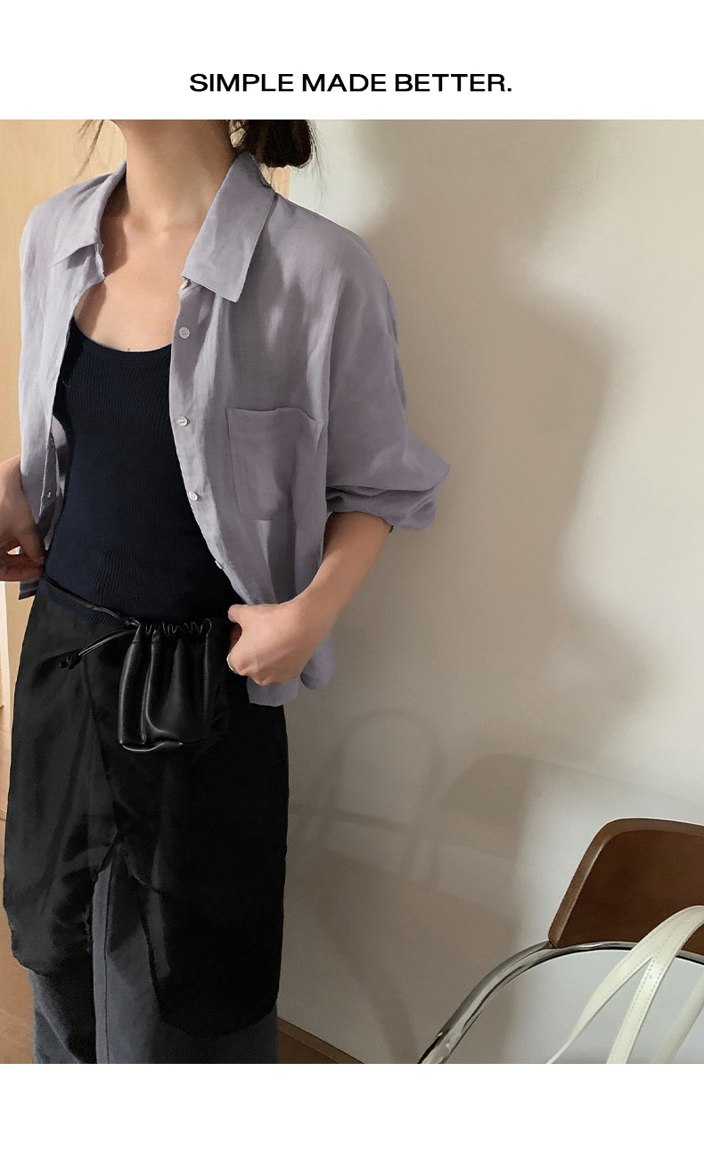 Han Xun 얇은 클래식 다목적 리넨 셔츠 여성 2025 초가을 새로운 솔리드 컬러 느슨한 버튼 카디건 25482