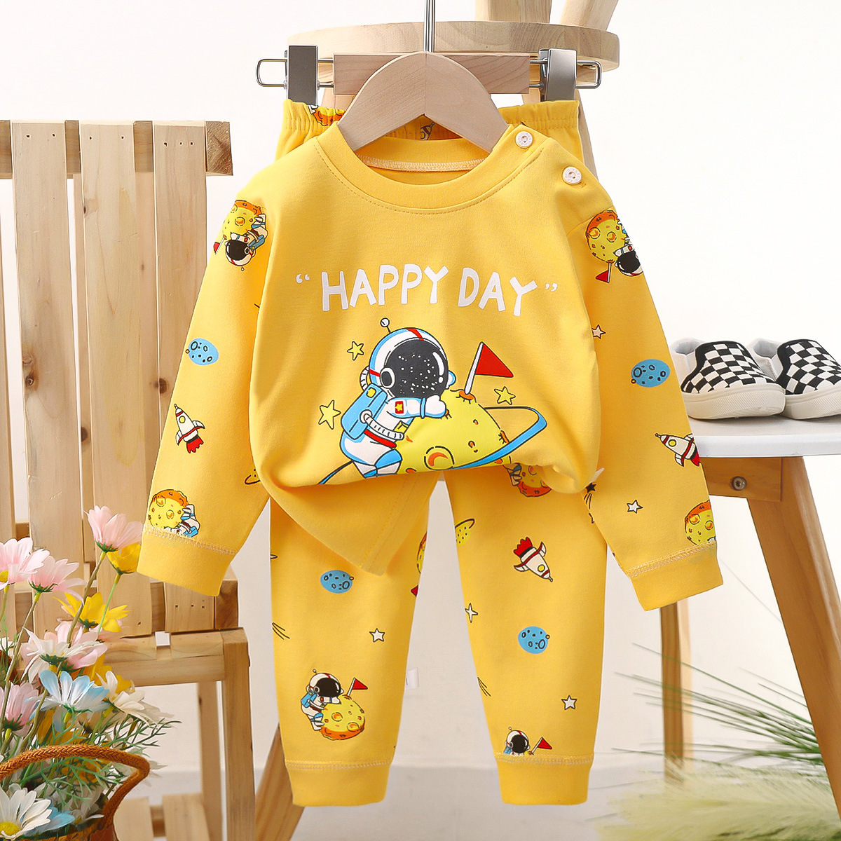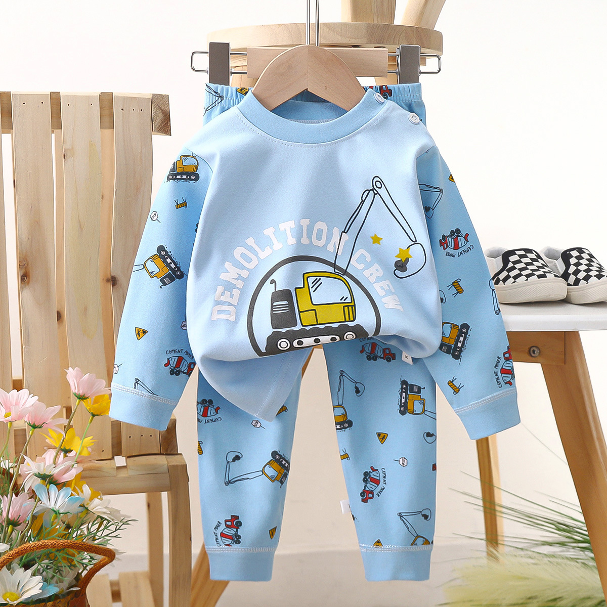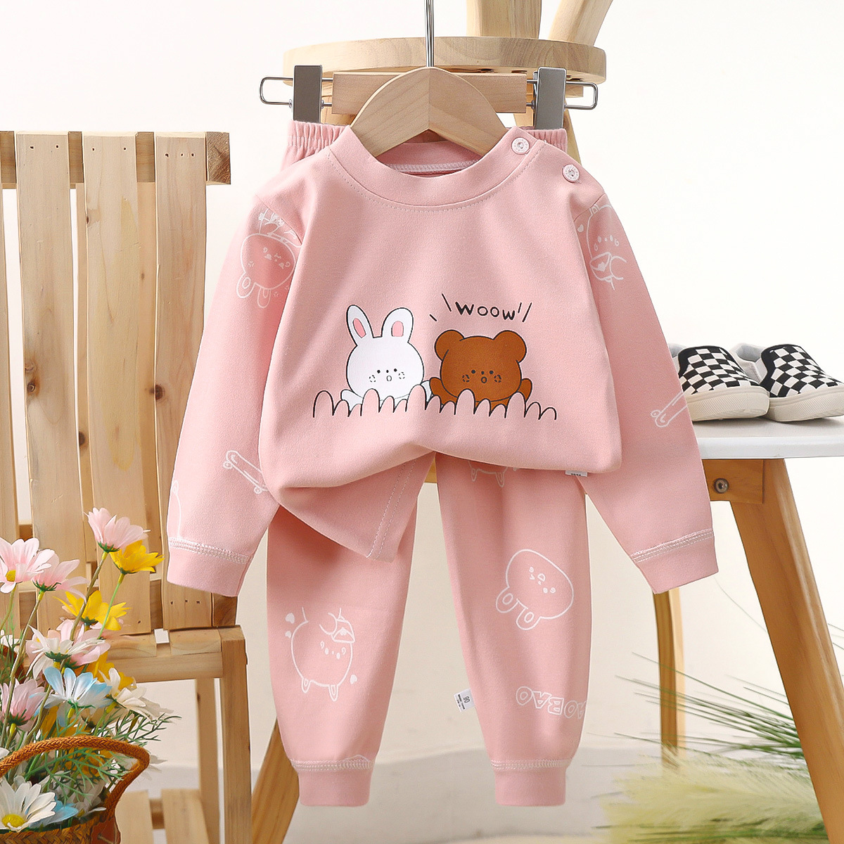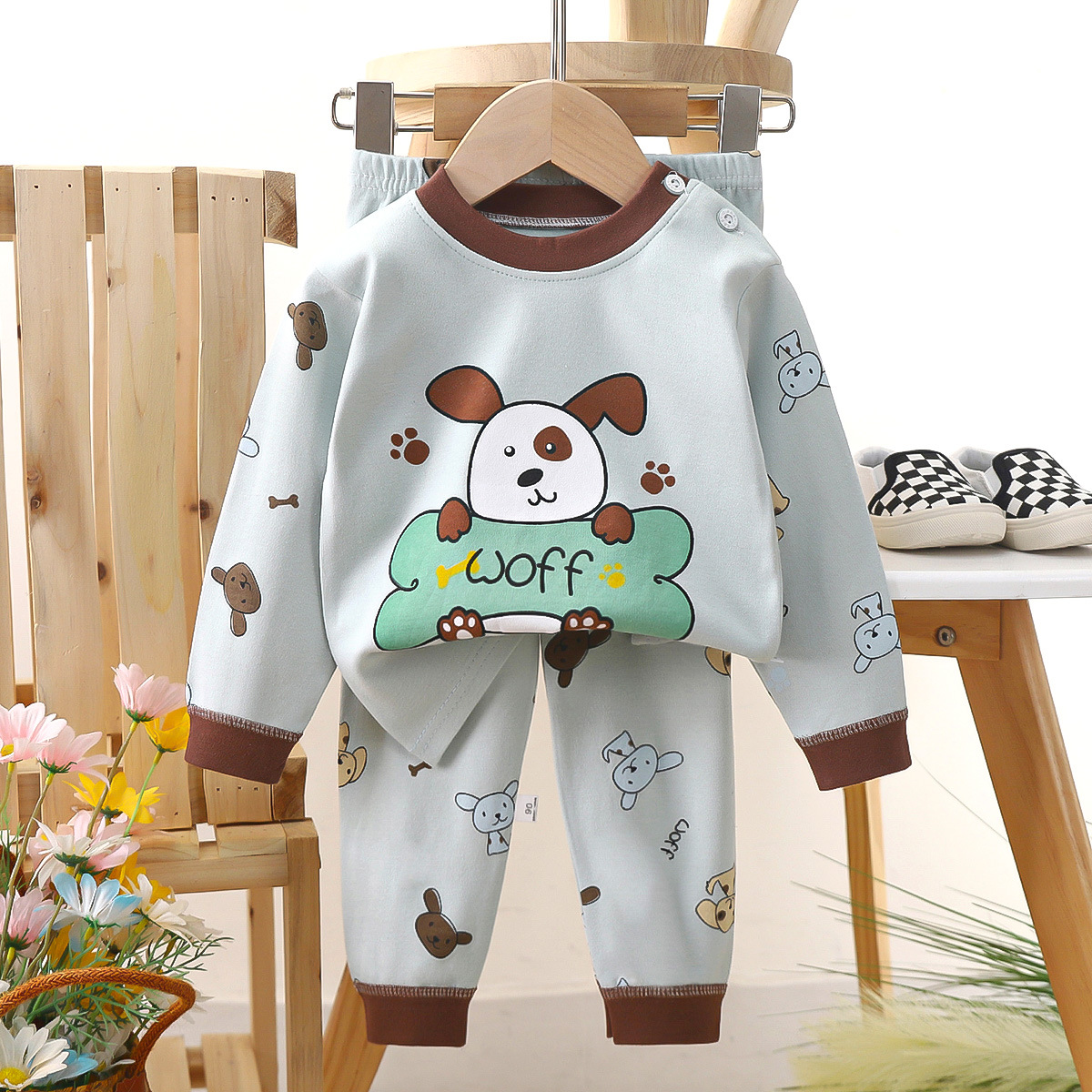 가을 겨울 어린이 속옷 세트, 순면 가을 옷과 긴 바지, 소년 소녀용 만화 잠옷, 긴팔 바지, 가정복