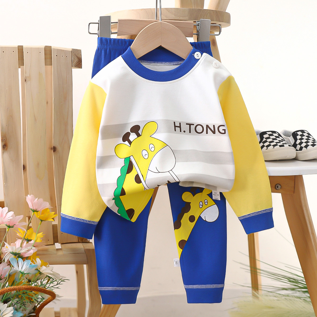 가을 겨울 어린이 속옷 세트, 순면 가을 옷과 긴 바지, 소년 소녀용 만화 잠옷, 긴팔 바지, 가정복스토어 가기