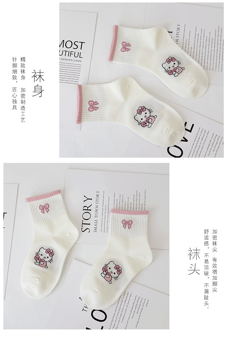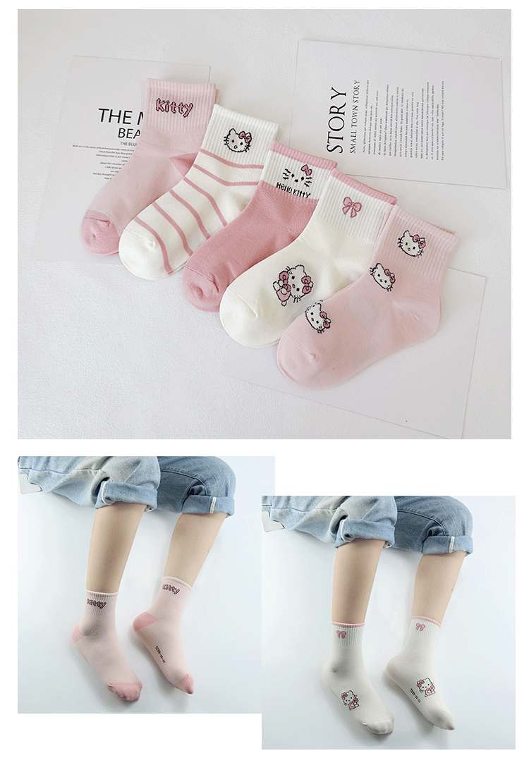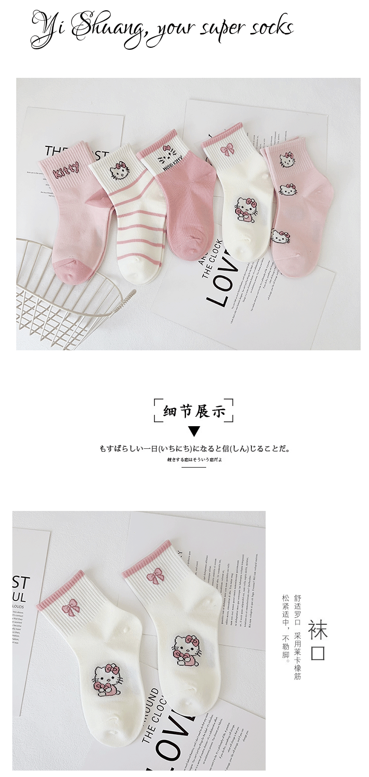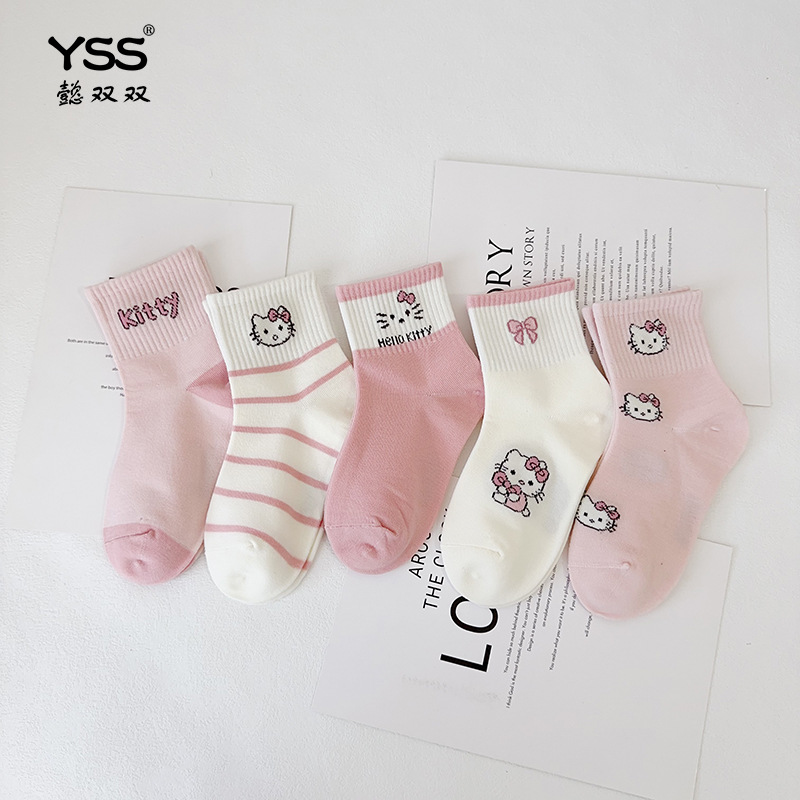 Yishuangshuang 어린이 양말 가을, 겨울 새로운 만화 KT 고양이 중간 튜브 양말 빗질면 한국어 버전 새끼 고양이 학생 양말 뼈없는