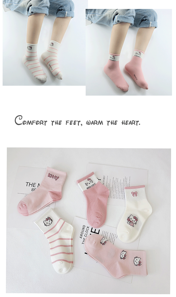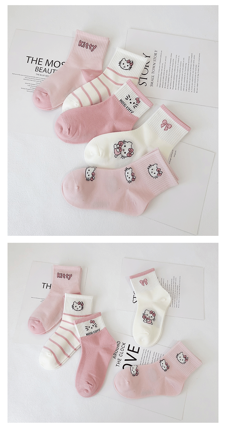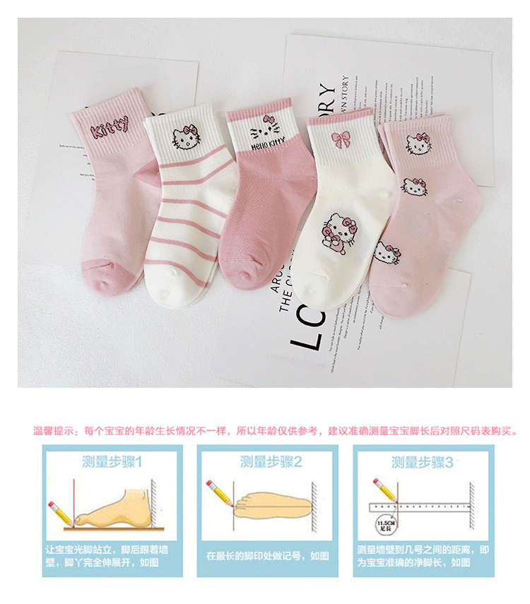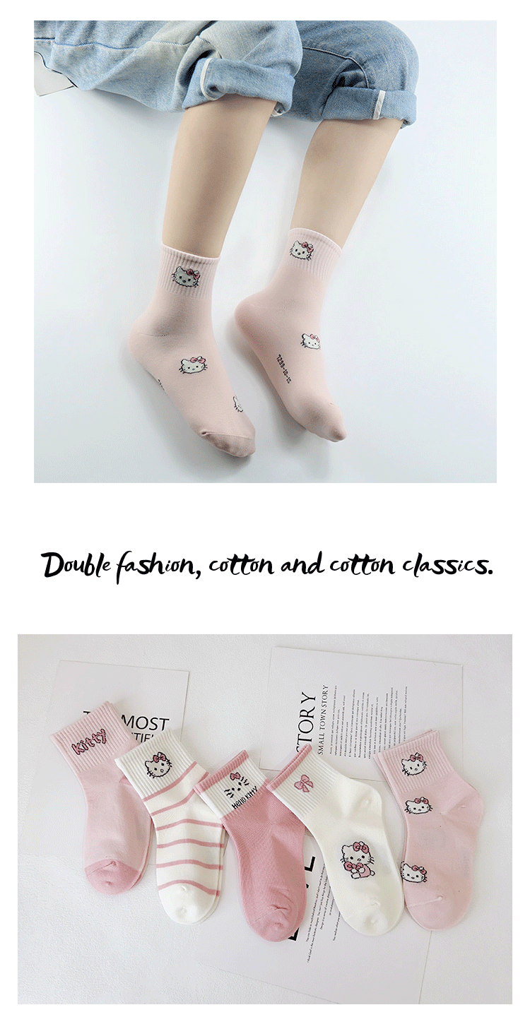 Yishuangshuang 어린이 양말 가을, 겨울 새로운 만화 KT 고양이 중간 튜브 양말 빗질면 한국어 버전 새끼 고양이 학생 양말 뼈없는