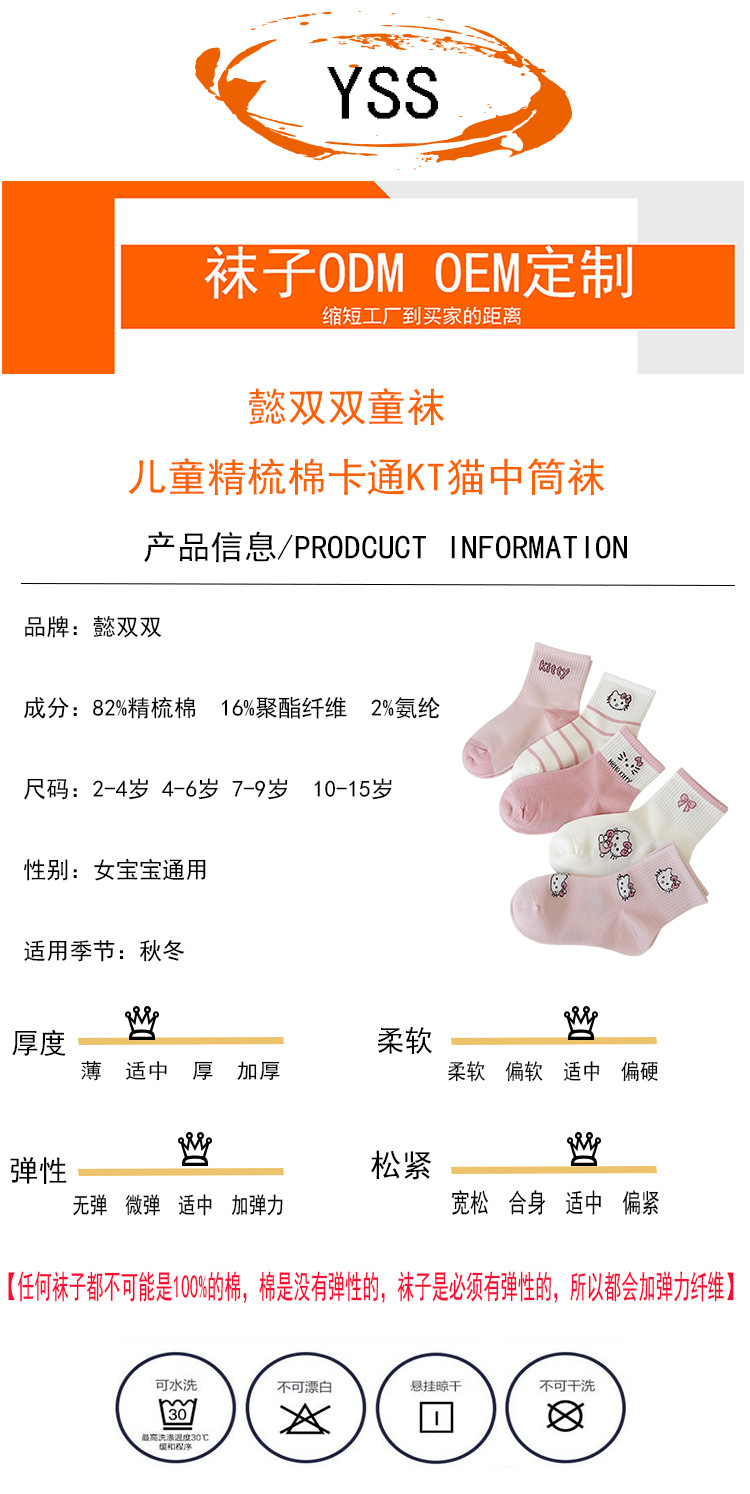 Yishuangshuang 어린이 양말 가을, 겨울 새로운 만화 KT 고양이 중간 튜브 양말 빗질면 한국어 버전 새끼 고양이 학생 양말 뼈없는스토어 가기