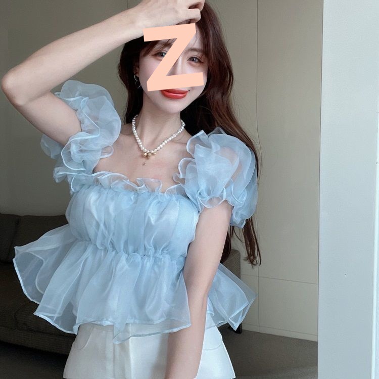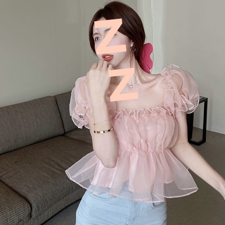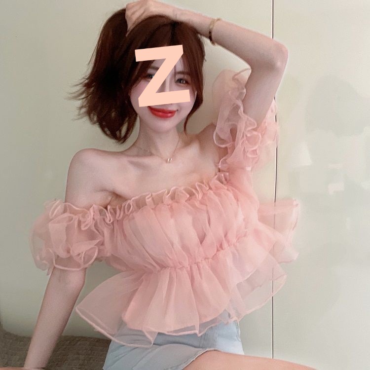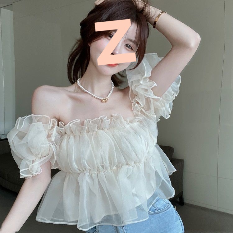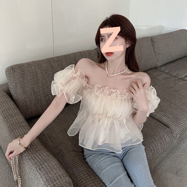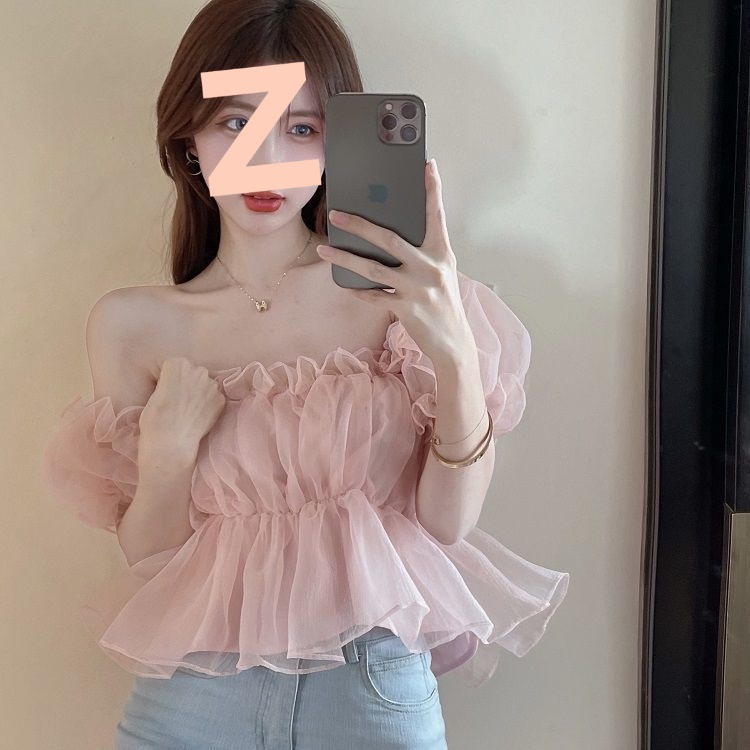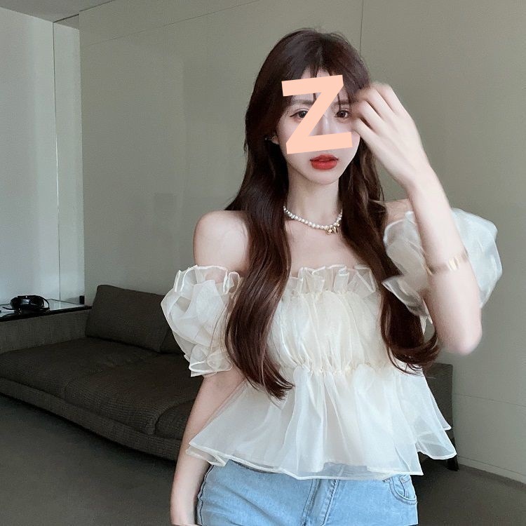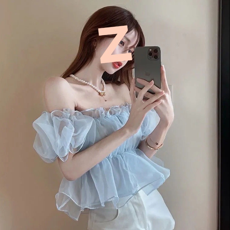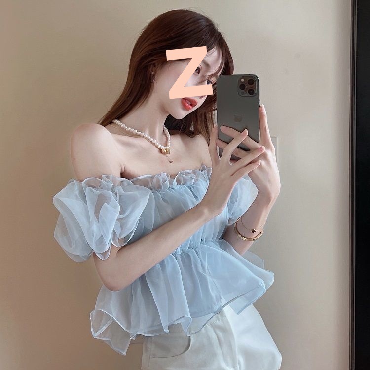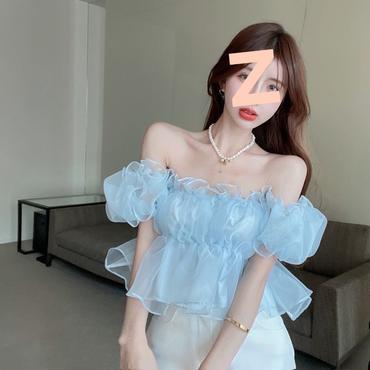 甜美一字肩上衣2025新款夏季辣妹显瘦法式泡泡袖一字领短袖雪纺衫스토어 가기