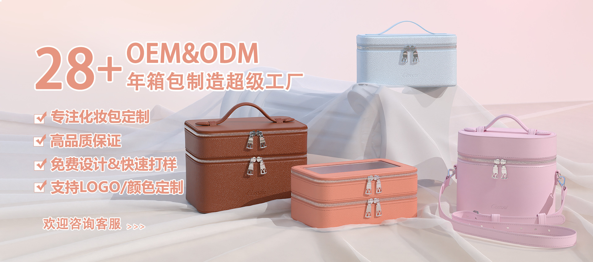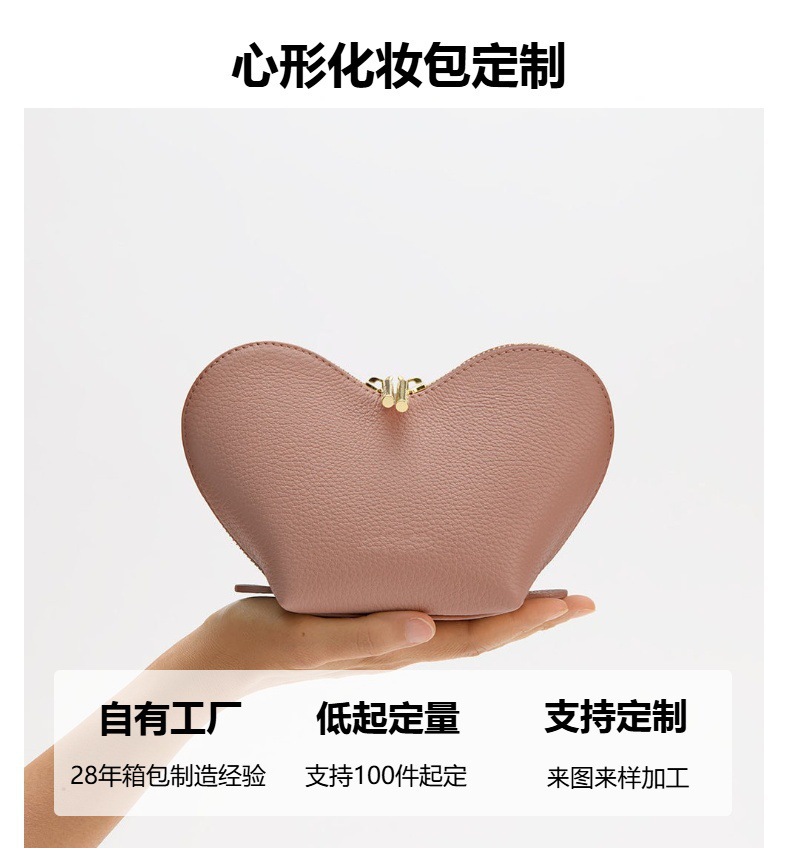 맞춤형 2025 새로운 화장품 가방 틈새 디자인 여성 가방 사랑 저장 가방 패션 간단한 가죽 클러치 백