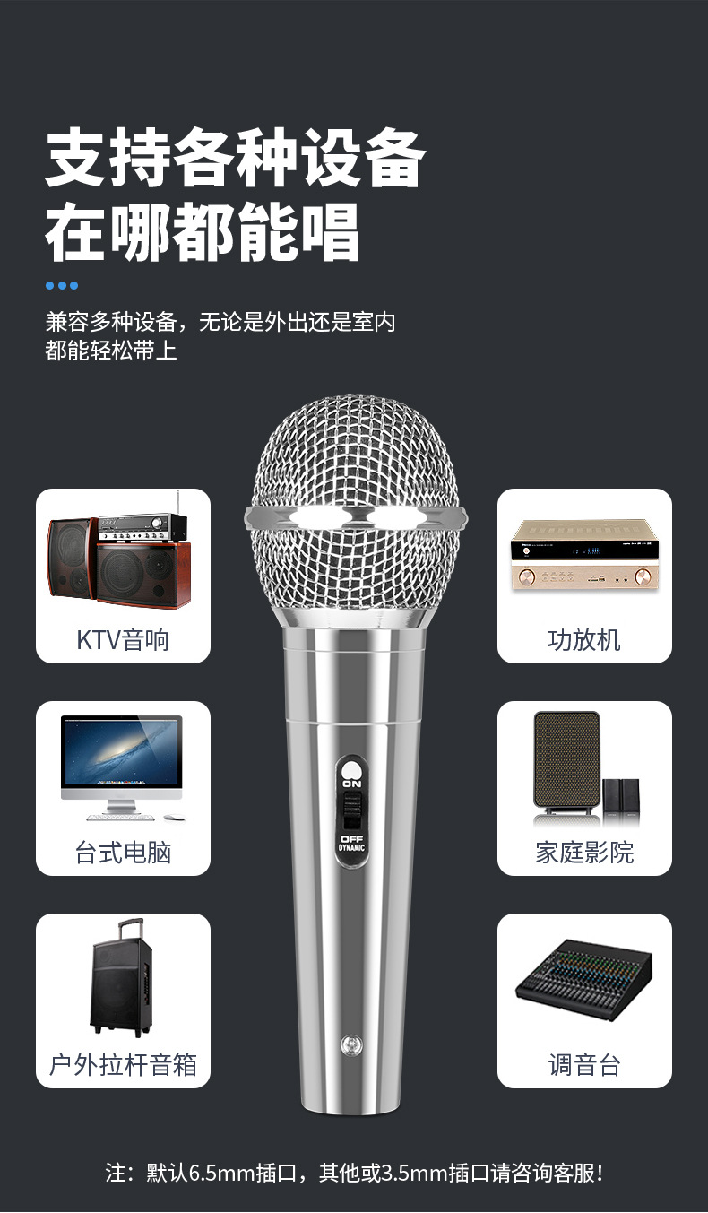 动圈式话筒手持家用户外舞台演出K歌音箱会议直播声卡有线麦克风