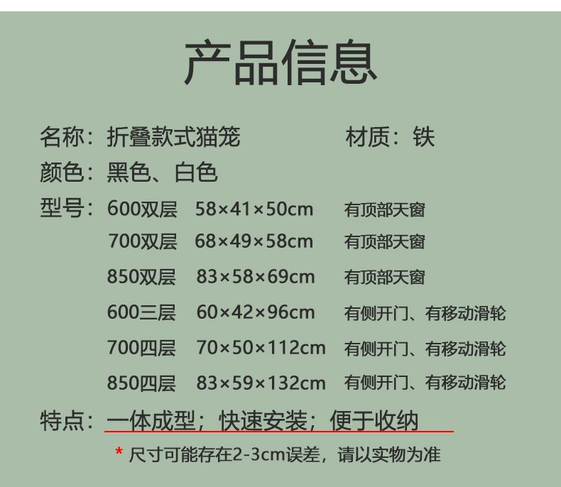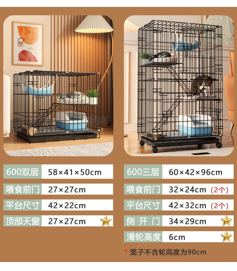 • 600三层黑色(适合成年猫咪1只/三个月以内幼猫2-3只)
