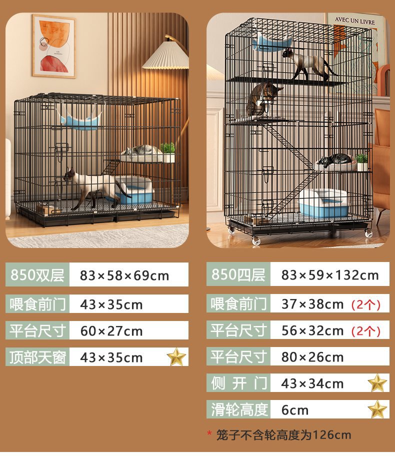 • 850四层黑色(适合成年猫咪2只/三个月以内幼猫4只)