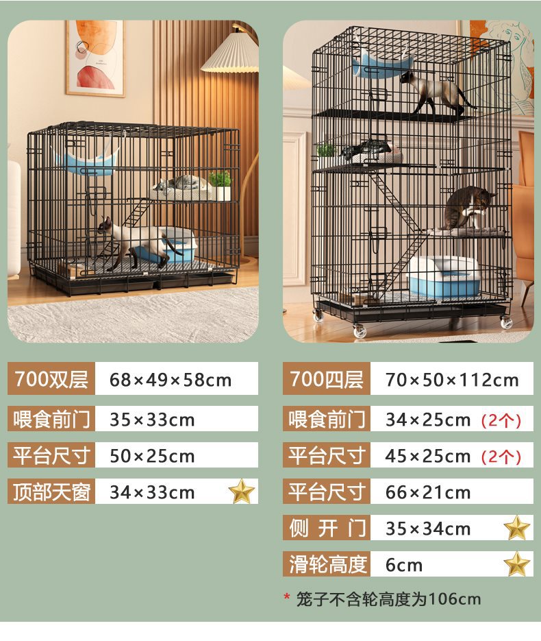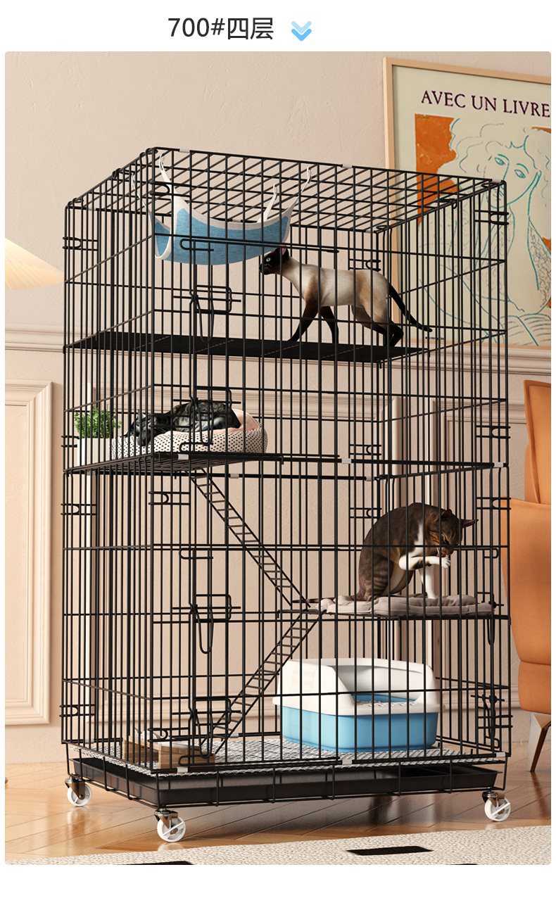• 700四层黑色(适合成年猫咪2只/三个月以内幼猫3只)