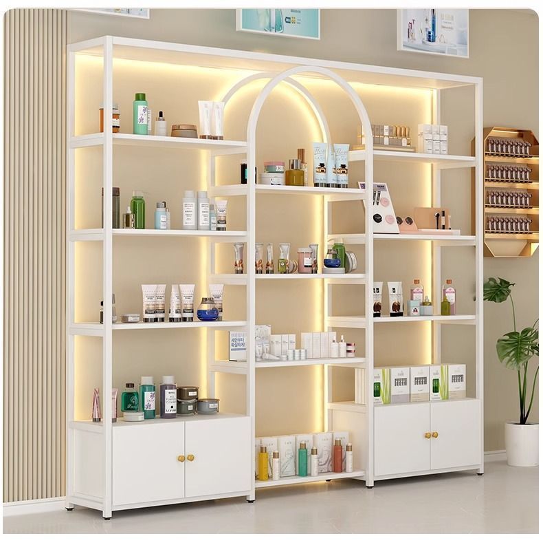 화장품 보관 랙, 바닥에서 천장까지 이어지는 미용실 디스플레이 캐비닛, 다층 매니큐어 디스플레이 랙, 다기능 제품 디스플레이 랙스토어 가기