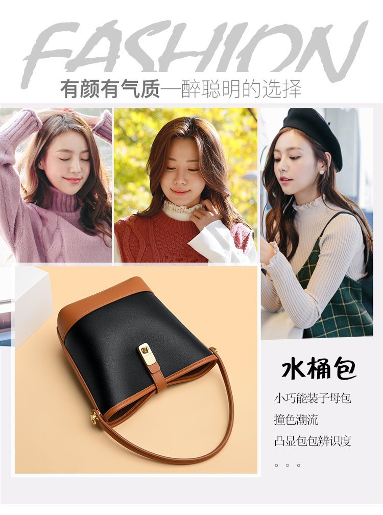 고급스러운 대비 색상 버킷 백 2024 패셔너블한 새로운 스타일의 싱글 숄더 크로스바디 핸드백 고품질 다용도 트렌디스토어 가기