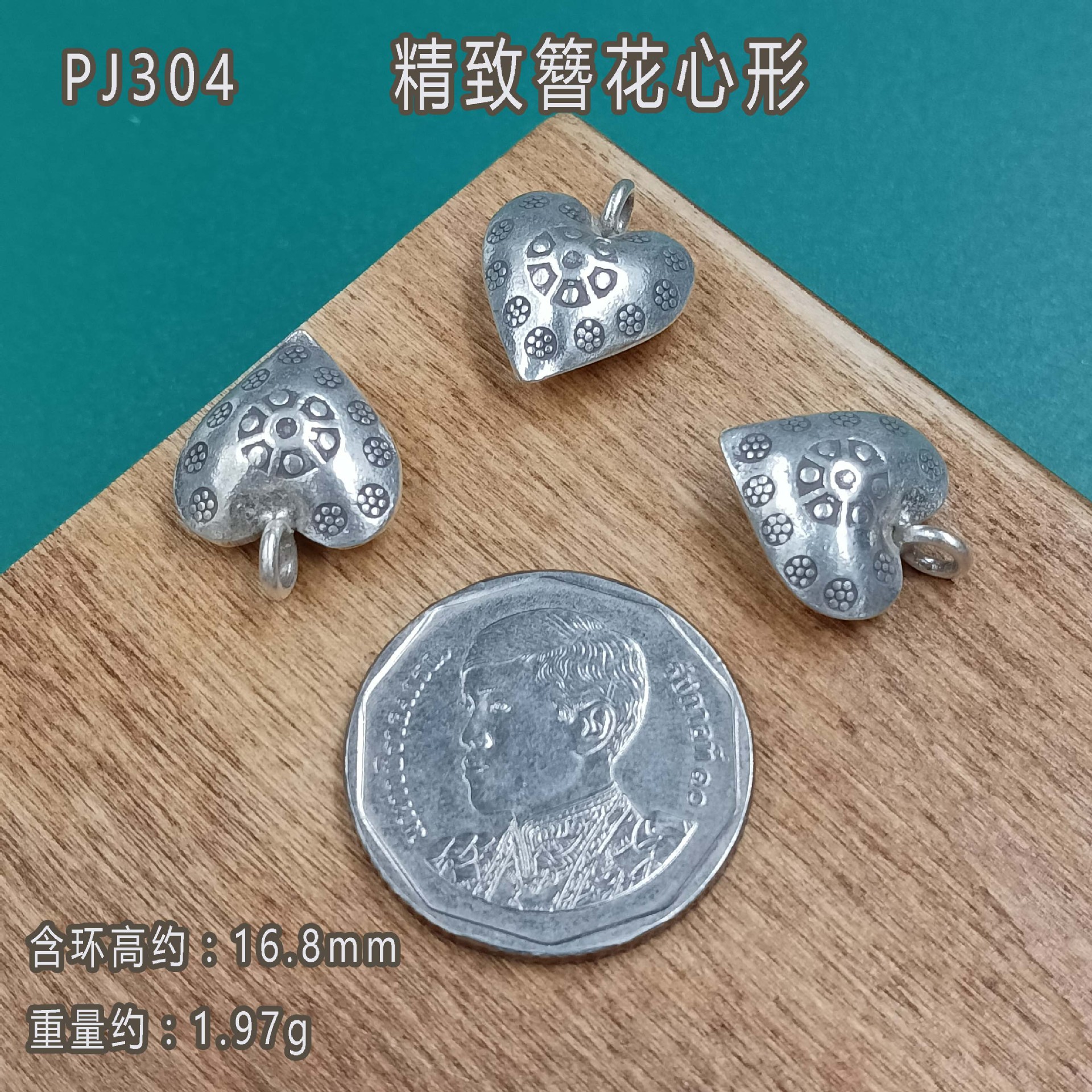 泰式手工银个性·吊坠清迈手工银爱心形小挂坠手工编绳手链材料