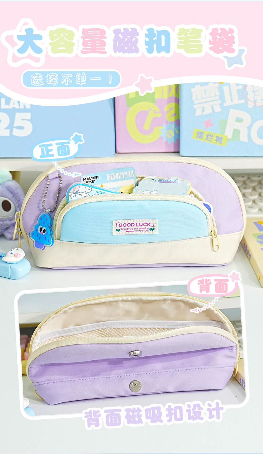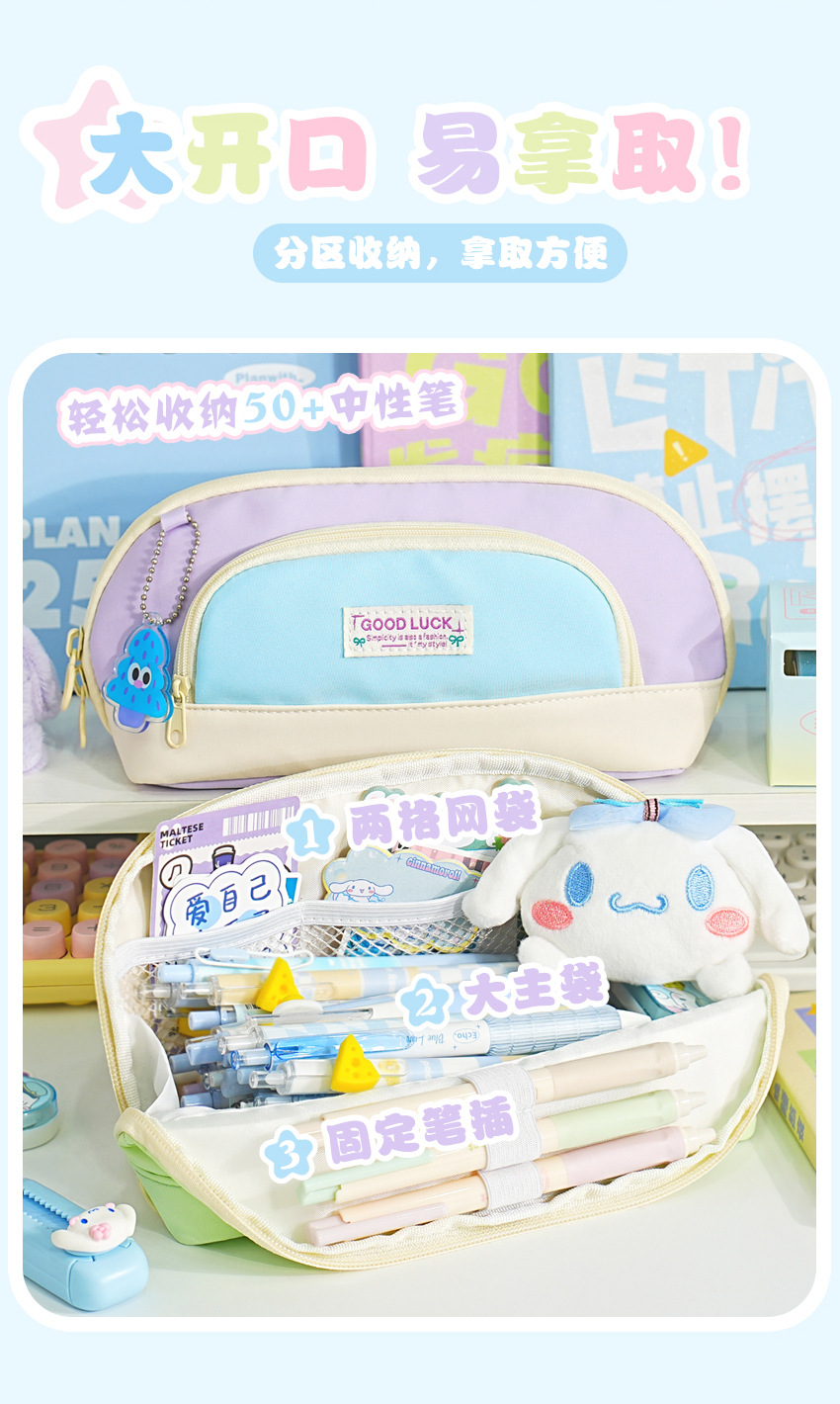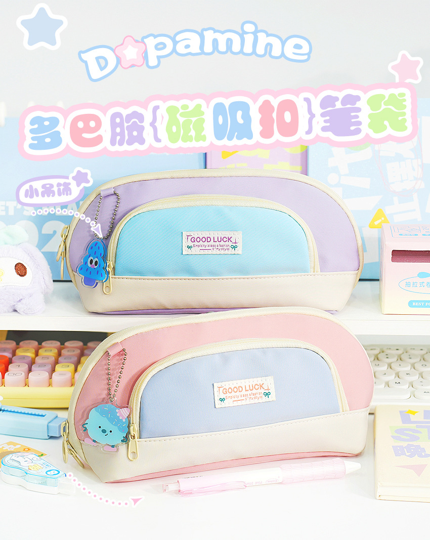 새로운 대비색 문구 상자 펜던트 대형 플립 커버 초등학생 범용 연필 가방 대용량 고가치 간단한 연필 가방스토어 가기