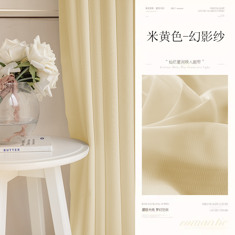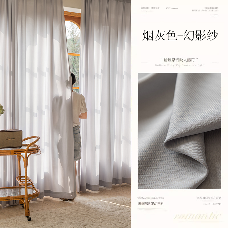 완전 차광 팬텀 거즈 커튼 거즈 커튼 거실 침실 빛 투과 불투명 긁힘 방지 창 스크린 단열 2024 새로운 스타일