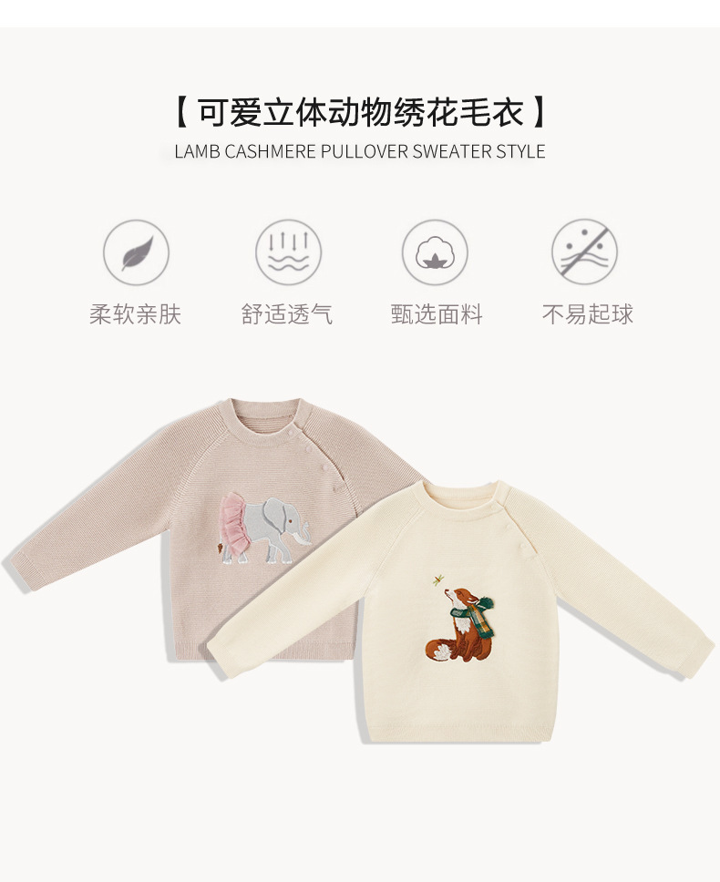 아기 풀오버 스웨터 2026 북유럽 스타일 가을 신상 따뜻한 유아동 동물 입체 자수 니트 상의