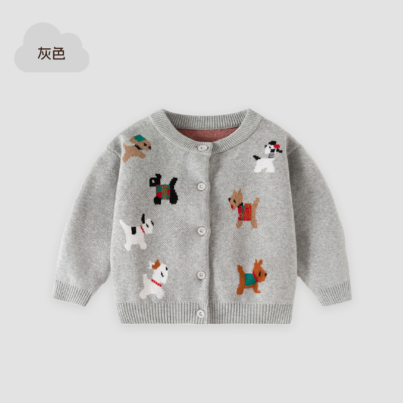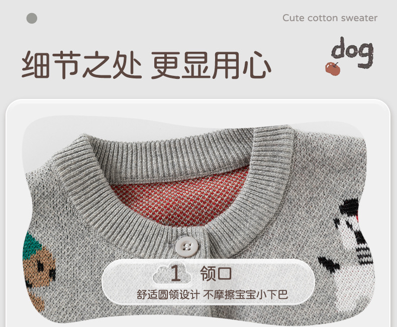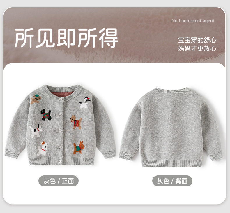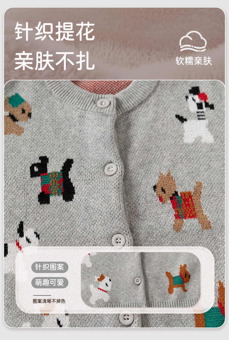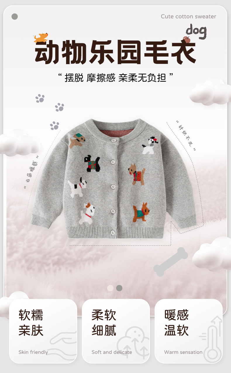 欢乐动物针织婴儿外套毛衣春秋新款可爱婴儿毛衣纯棉A类宝宝毛衣