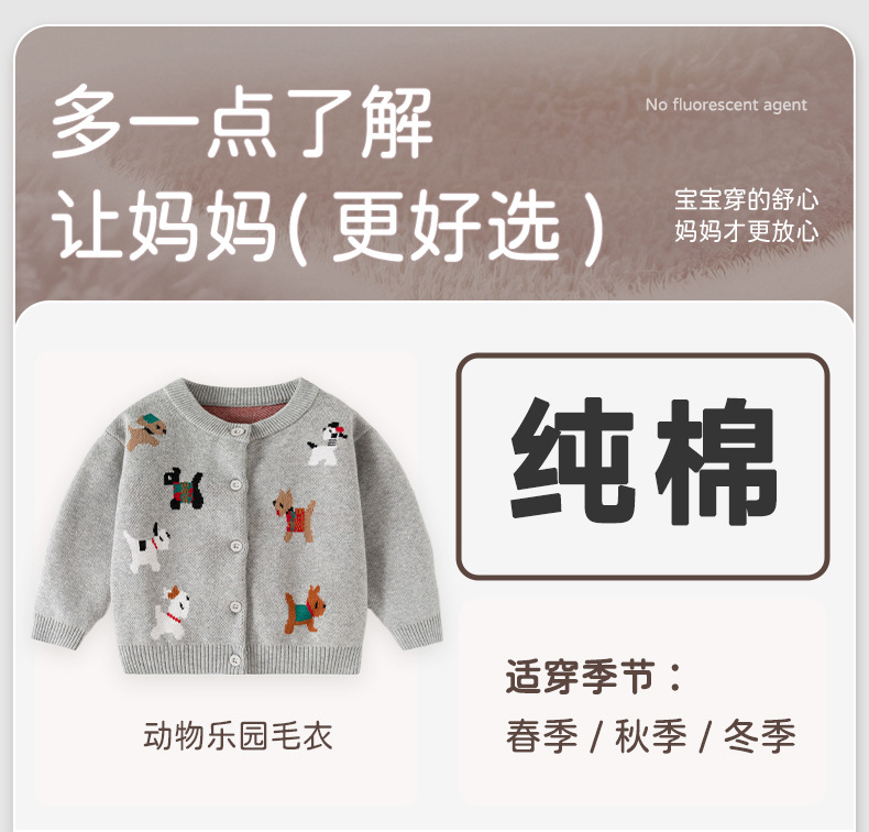 欢乐动物针织婴儿外套毛衣春秋新款可爱婴儿毛衣纯棉A类宝宝毛衣스토어 가기