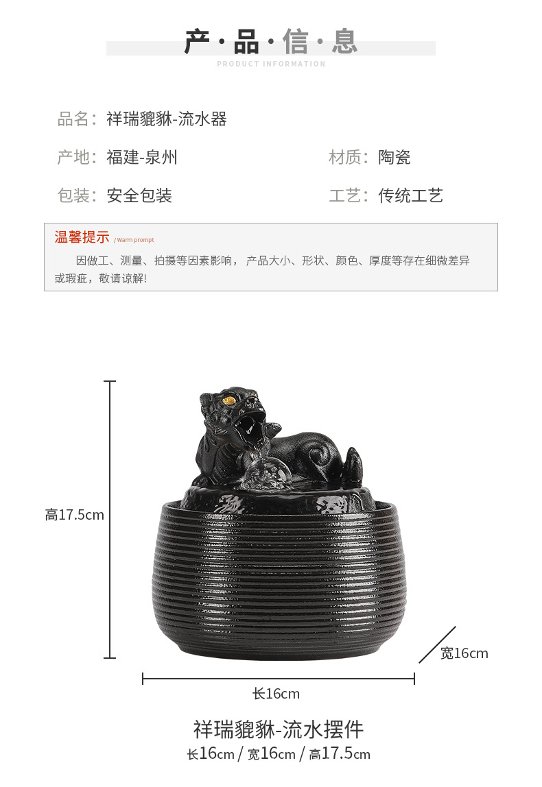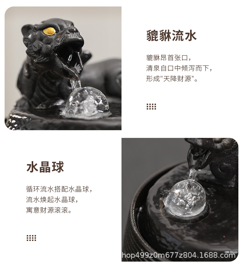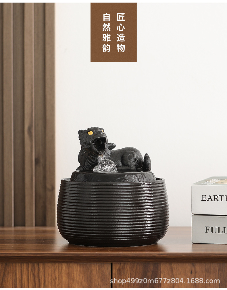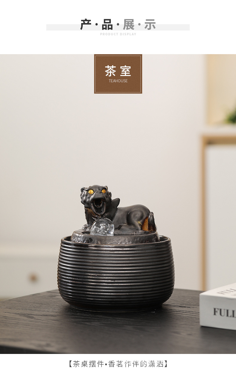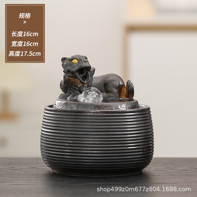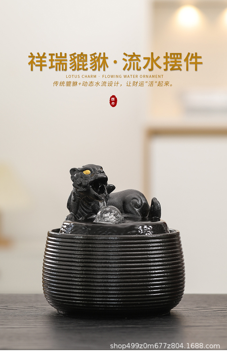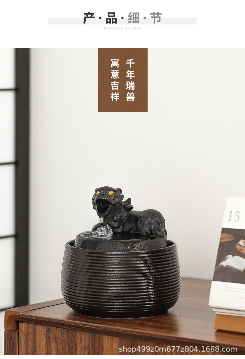 창의적인 물 순환 세라믹 물 분수 데스크탑 Pixiu 행운의 풍수 장식품 사무실 입구 가습 분수