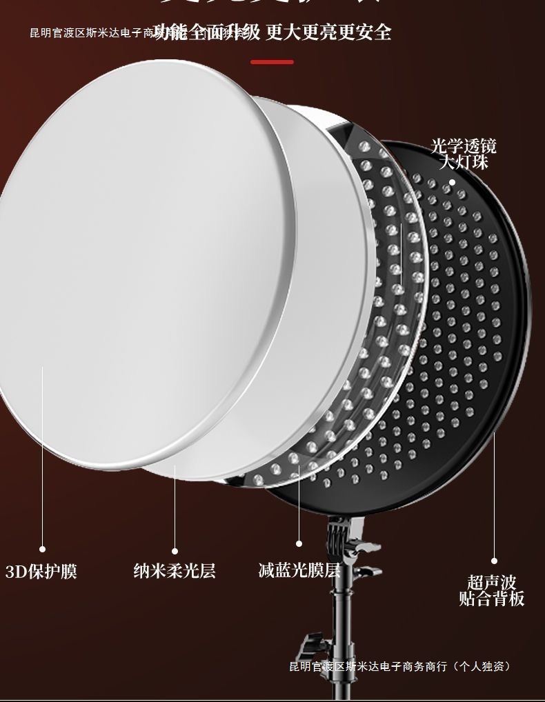 • 2.1m 라이트 스탠드 + 추가 카메라 위치 + 16CM 전체 화면 조명